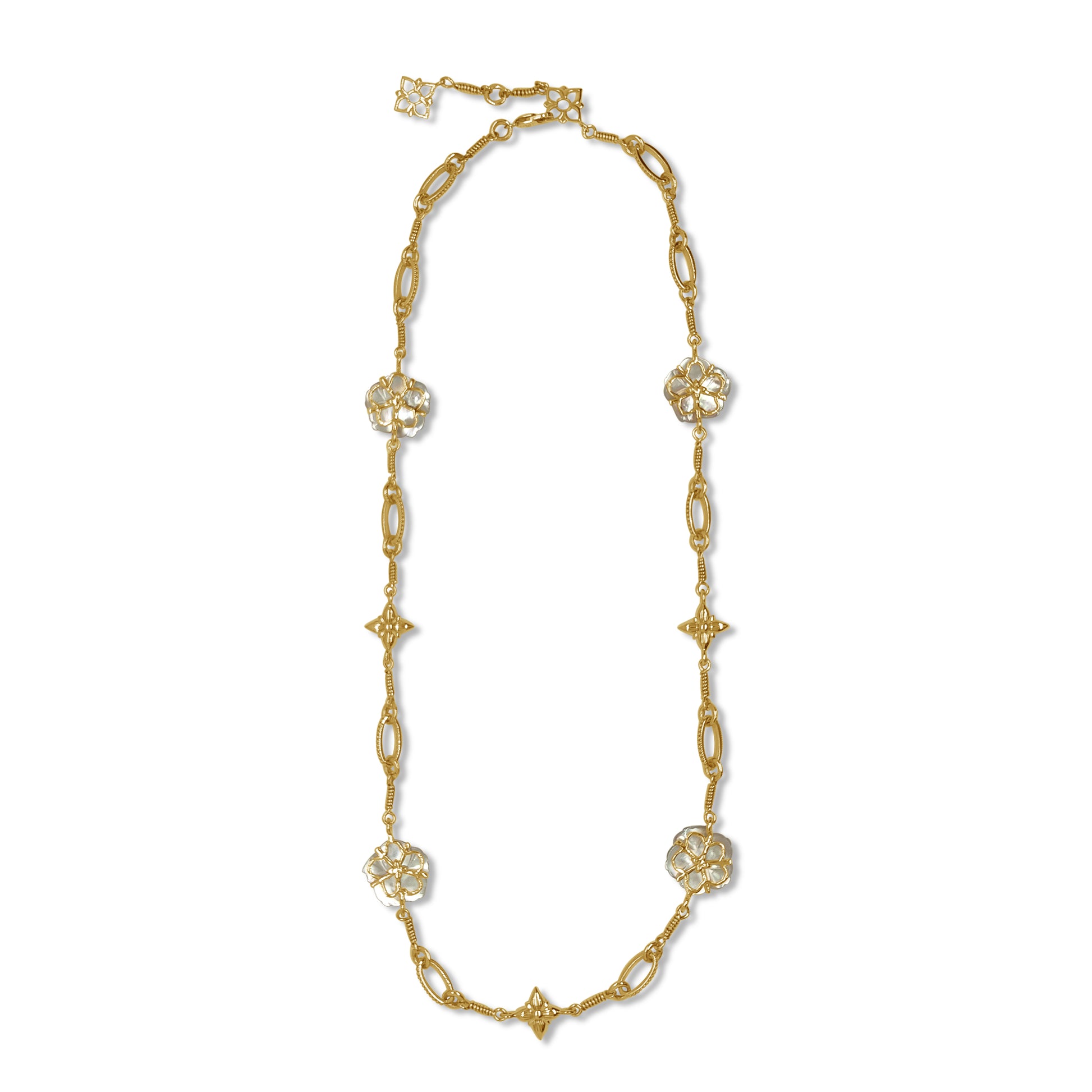 Colorbloom 14mm White Mother of Pearl Flower and White Diamond 0.35ct Necklace in 18K Gold