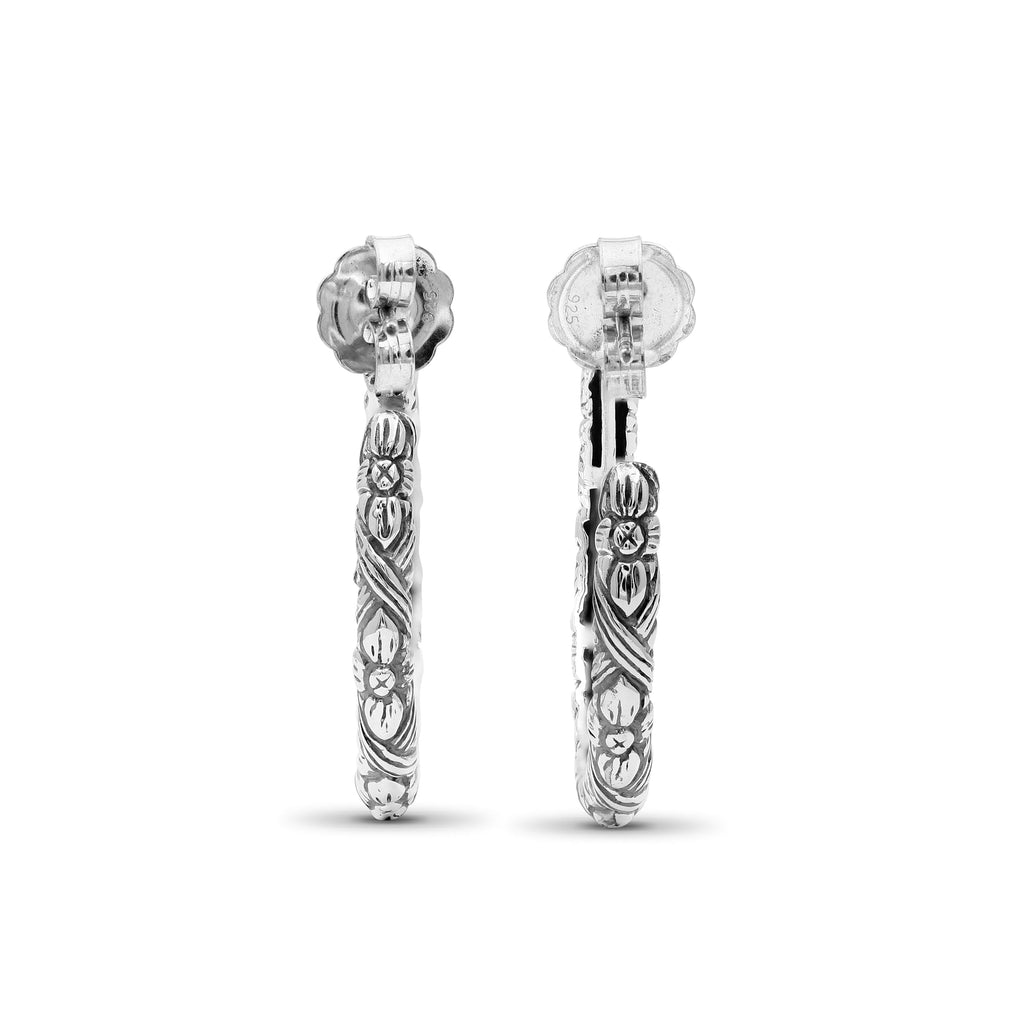 Orogento Large Sterling Silver Flower Engraved Hoop Earrings