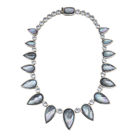 Garden of Stephen Natural Quartz Mother of Pearl and Hematite Necklace in Sterling Silver