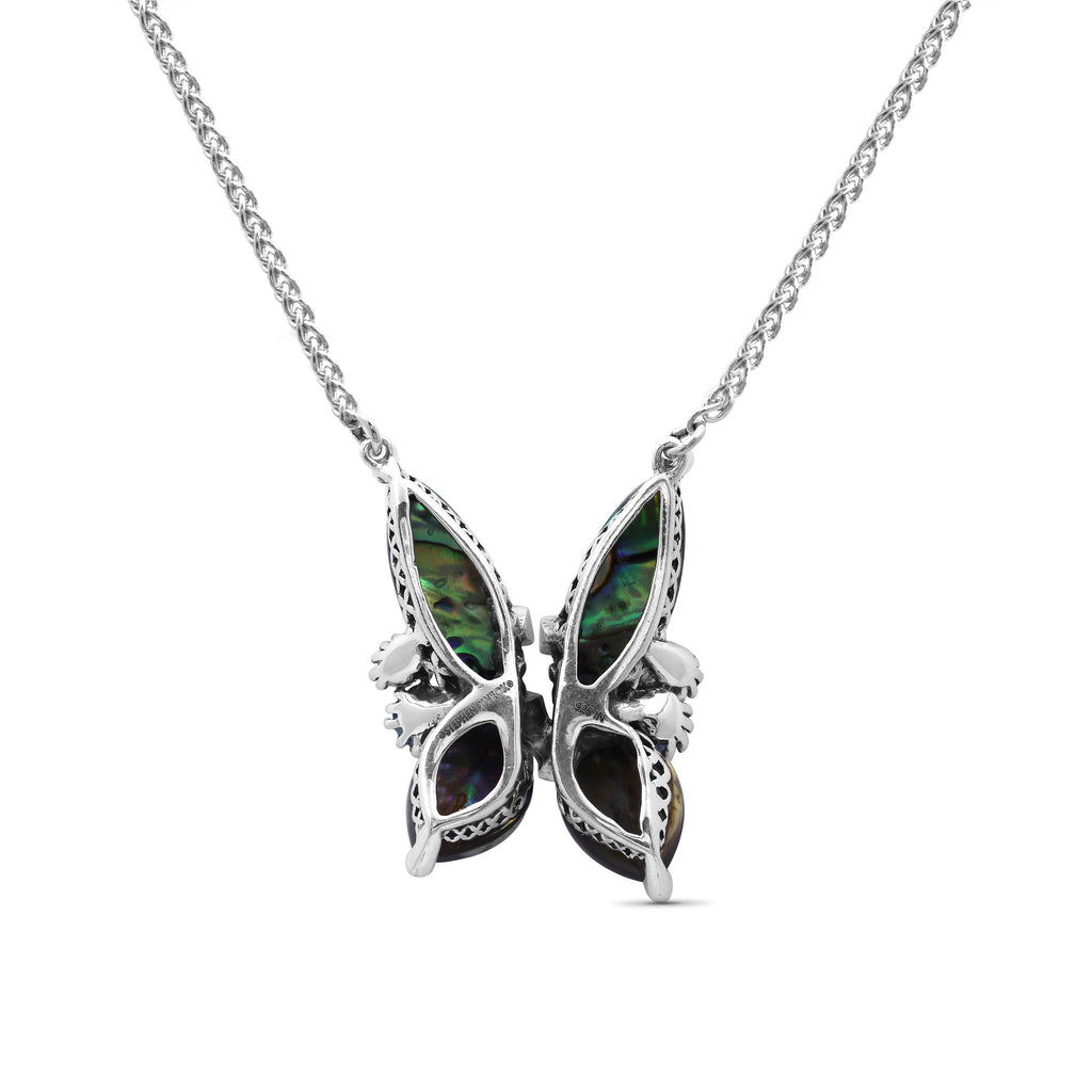 Terraquatic Faceted Natural Quartz Abalone and Blue Topaz Butterfly Pendant in Sterling Silver