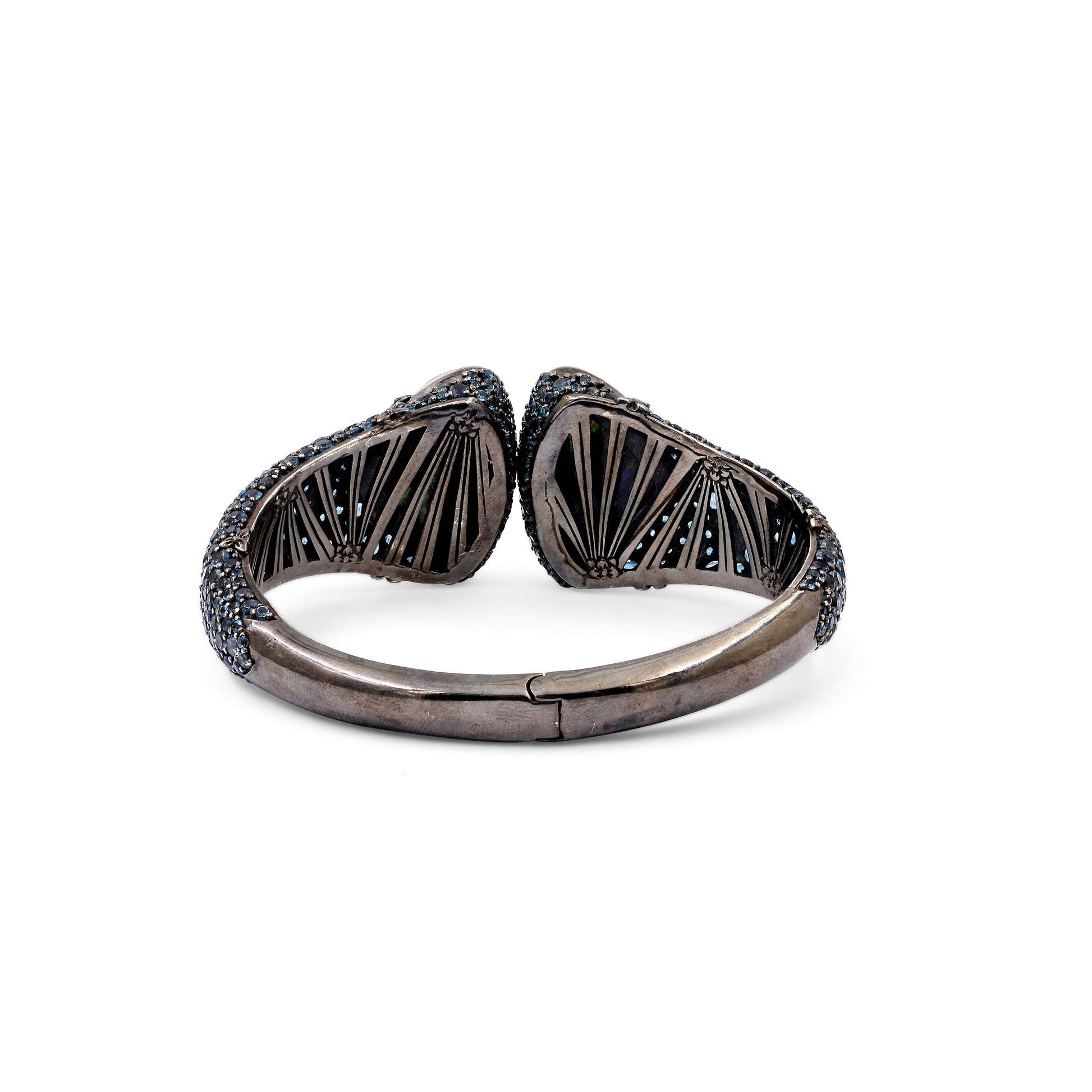 Garden of Stephen Rainbow Moonstone and London Blue Topaz Open and Close Bangle in Sterling Silver With 18K Gold Flowers