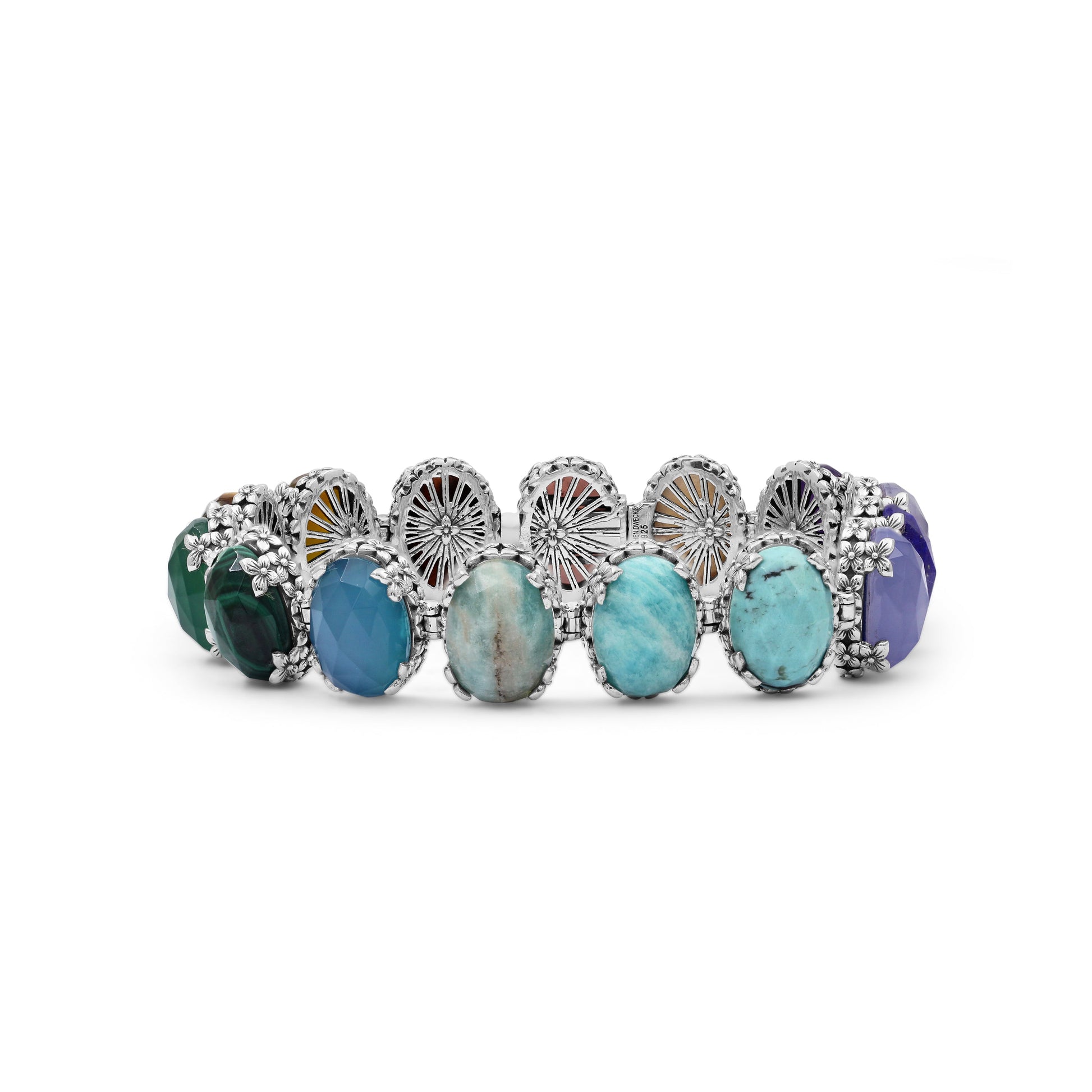 Garden of Stephen Amethyst Lapis Chrysocolla Turquoise Amazonite Malachite Agate Vessonite Moonstone Tiger Eye Cognac Quartz Sunstone Carnelian Rhodochrosite and Guava Quartz Bracelet in Sterling Silver