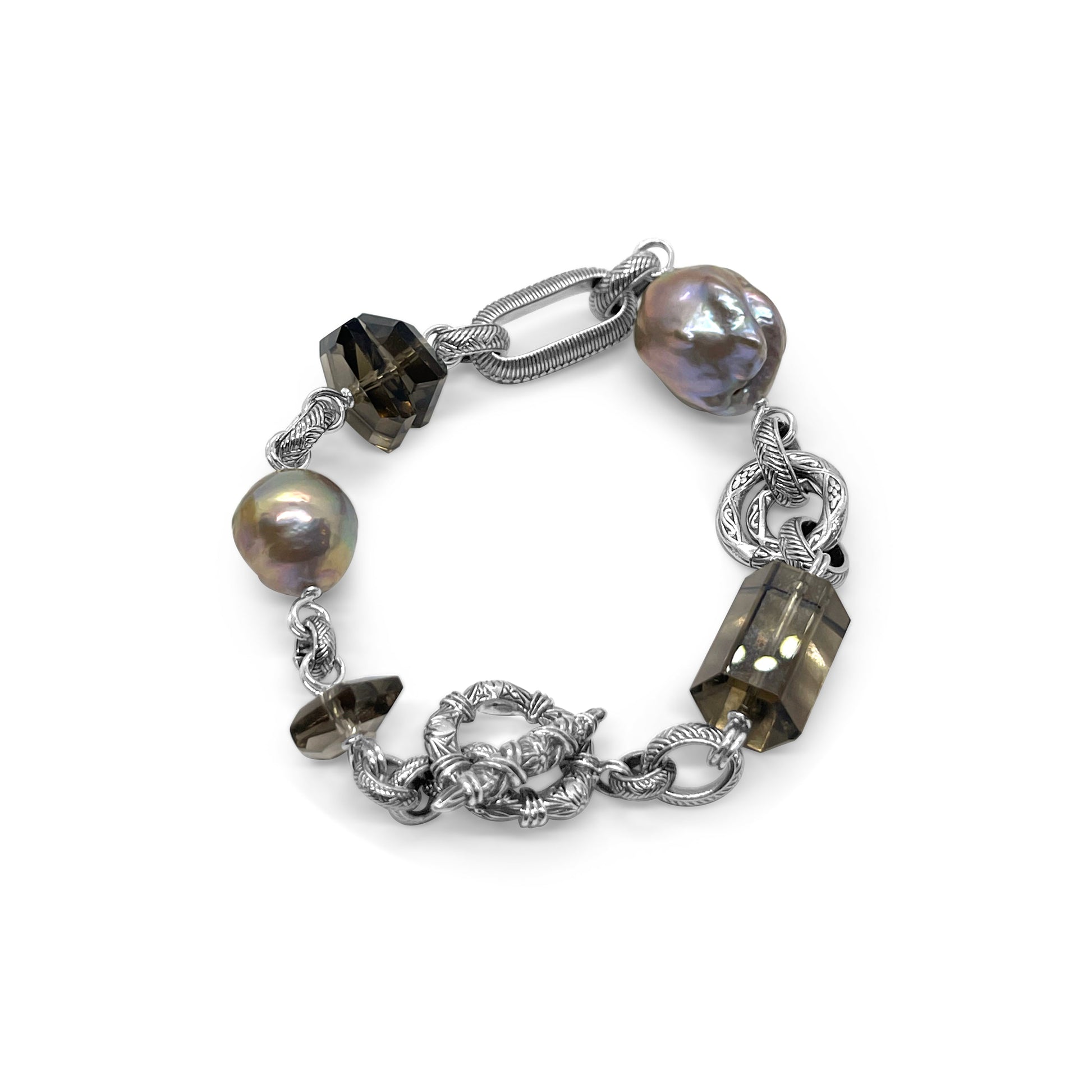 Terraquatic Smoky Quartz and Pearl Bracelet in Sterling Silver