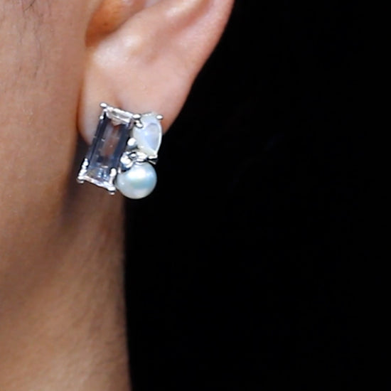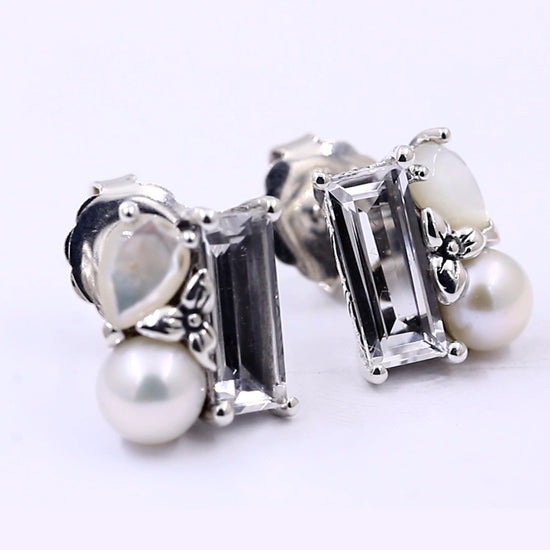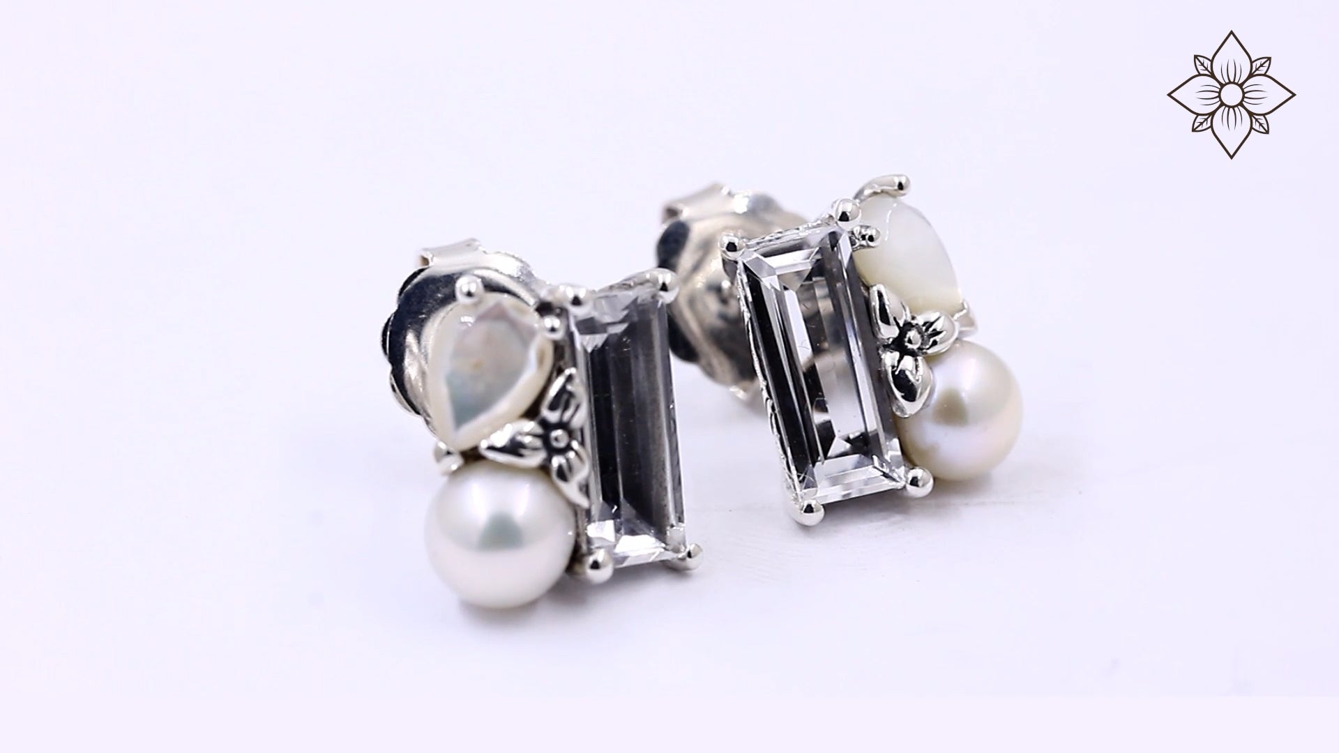 Rockragous Faceted Rock Crystal, Natural Pearl, Mother of Pearl set in Sterling Silver
