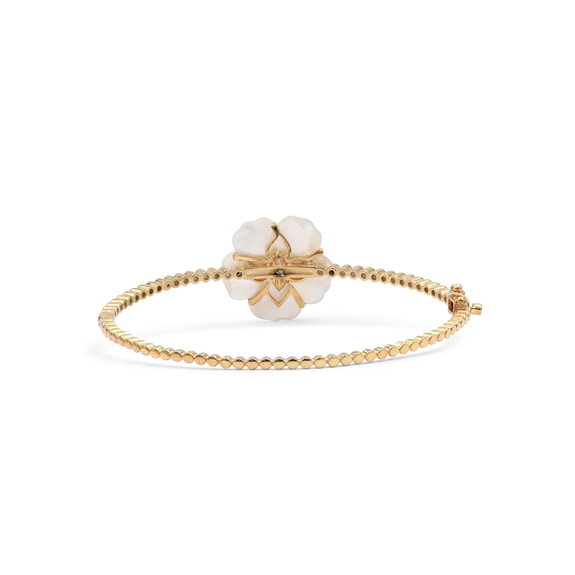 Colorbloom 22mm White Mother of Pearl Flower and White Diamond 0.45ct Bangle in 18K Gold