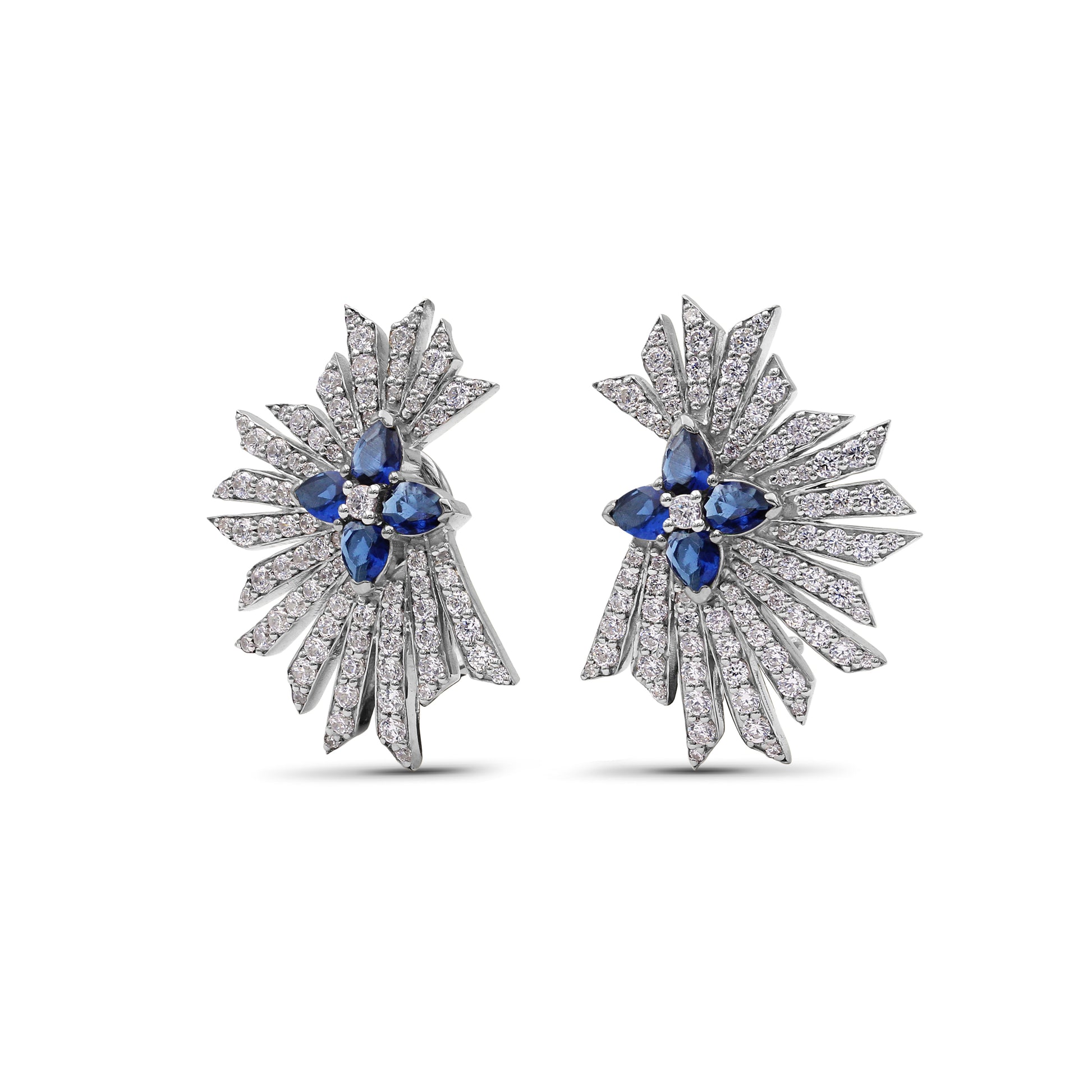 Sunray Sapphire 1.60ct and Diamond 1.85ct Earring in 18K Gold