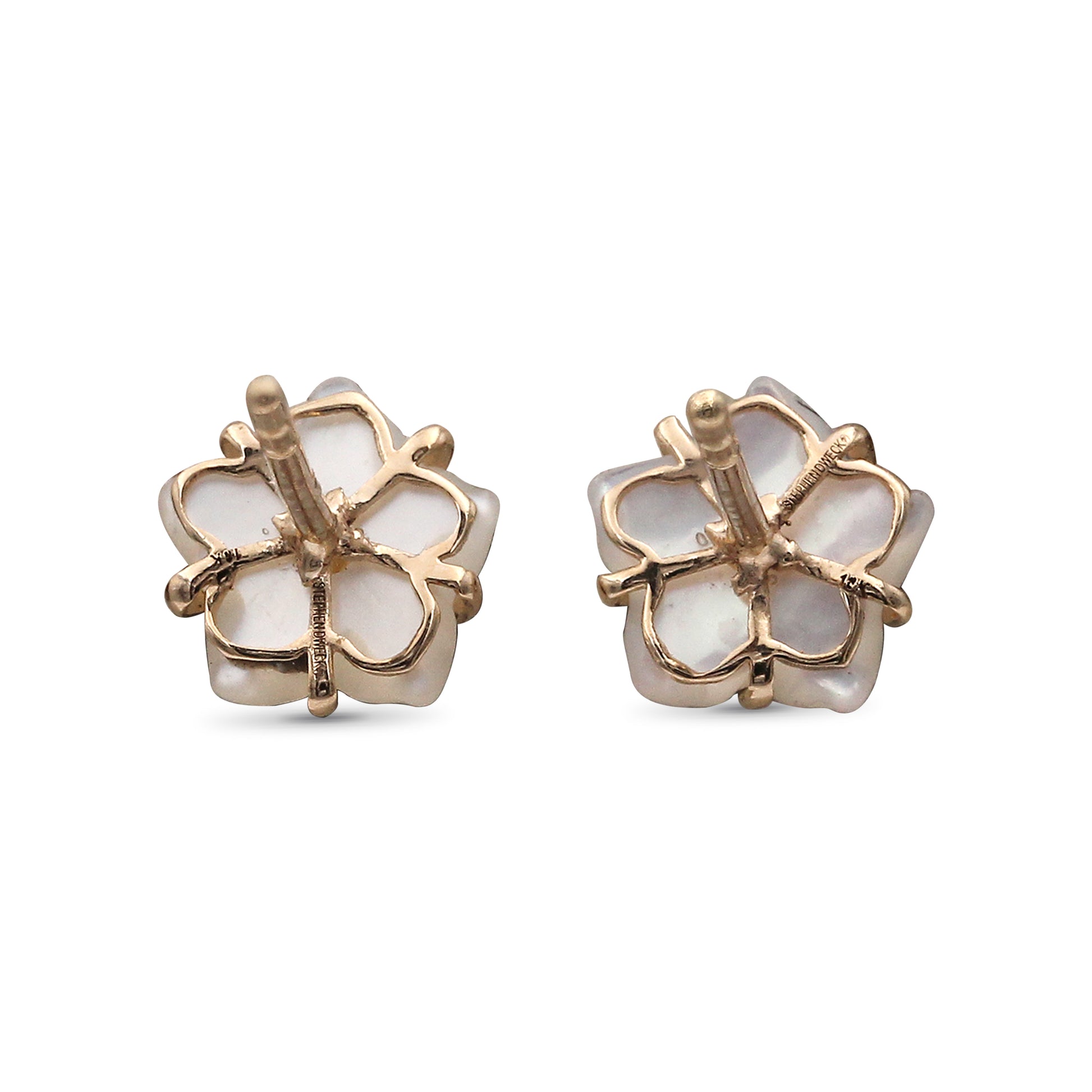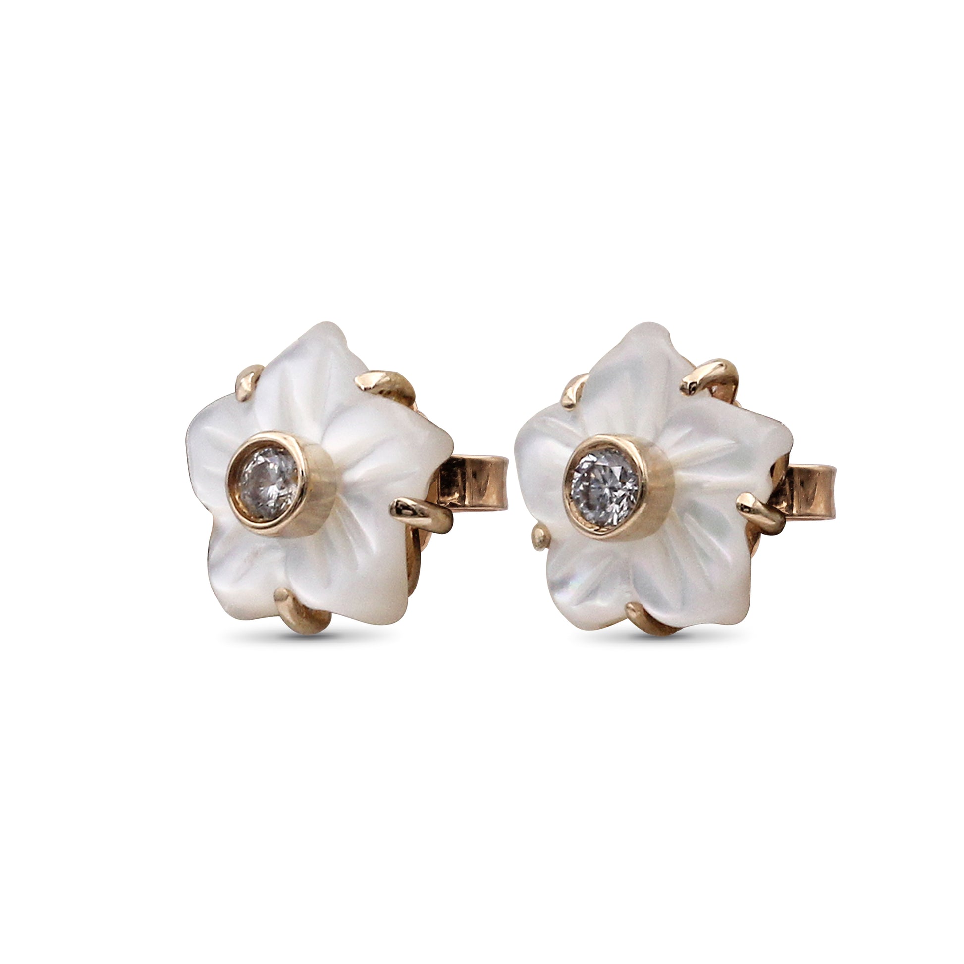 Luxury Colorbloom 8.00mm White Mother of Pearl Flower and White Diamond Earring in 18K Gold