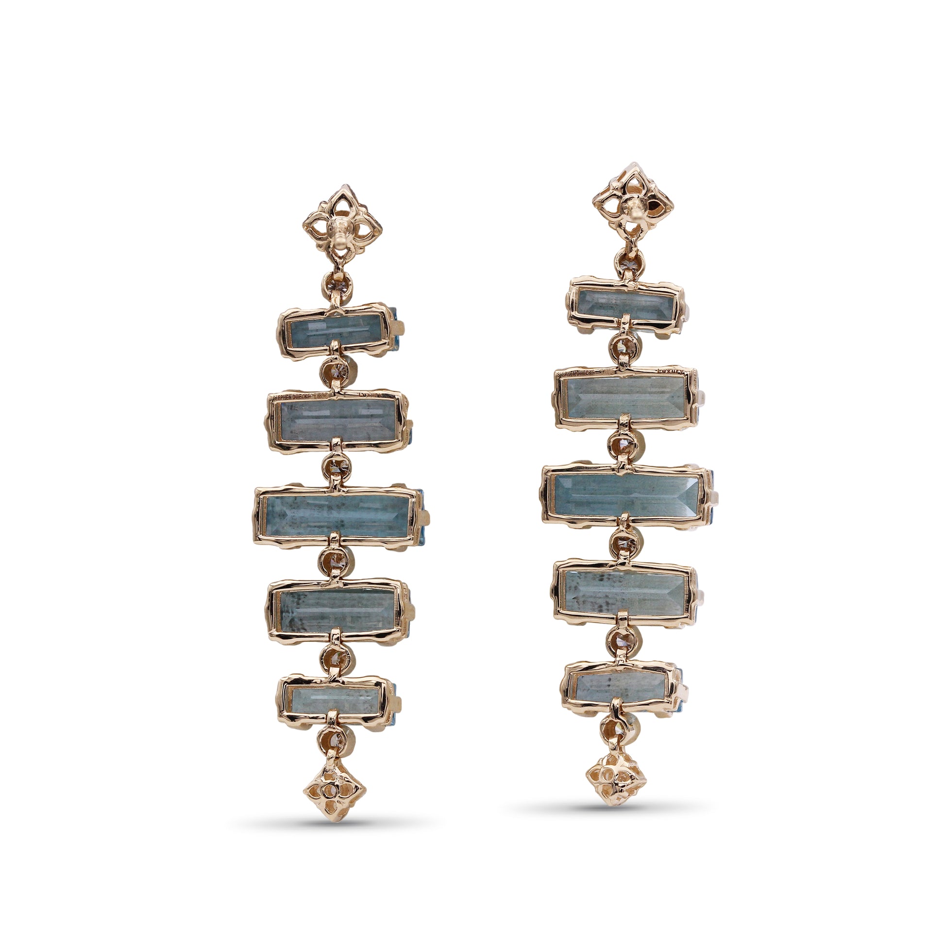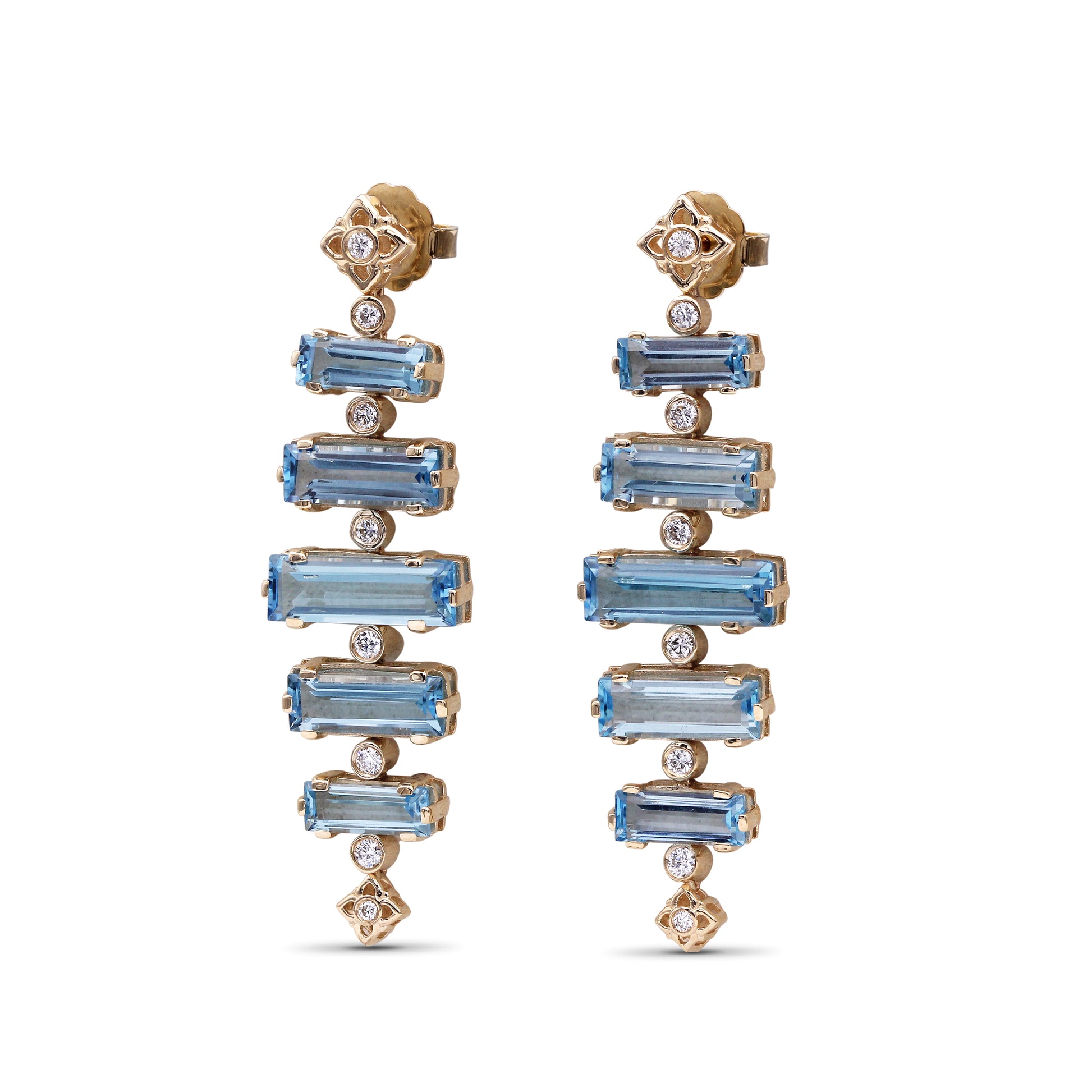 Echoing the tranquil tones of sky and sea, Aurora is light incarnate, reimagined. This earring from the Aurora Collection is handcrafted in 18K Gold, featuring Swiss blue topaz, baguette cut, geometric elegance, 18K gold, modern design. A true collector’s piece that transforms gemstone storytelling into wearable art.