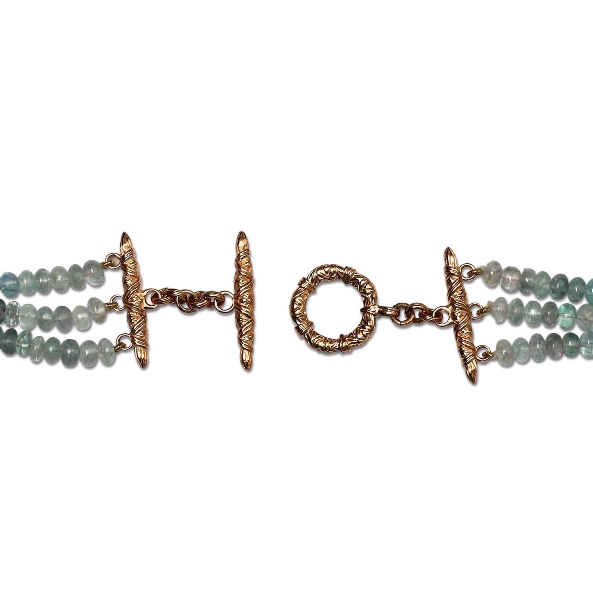 Luxury Vintage Hand Carved Jade Aquamarine Tourmaline Bead and Diamond 1.55ct Necklace in 18K Gold