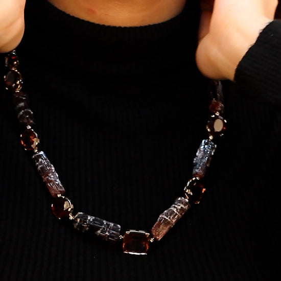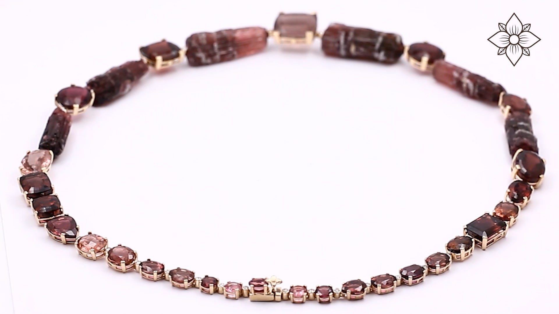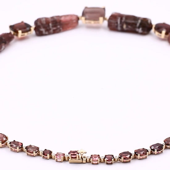 Luxury Faceted and Natural Formation Pink Tourmaline 300ct and Diamond 1.00ct Necklace in 18K Gold