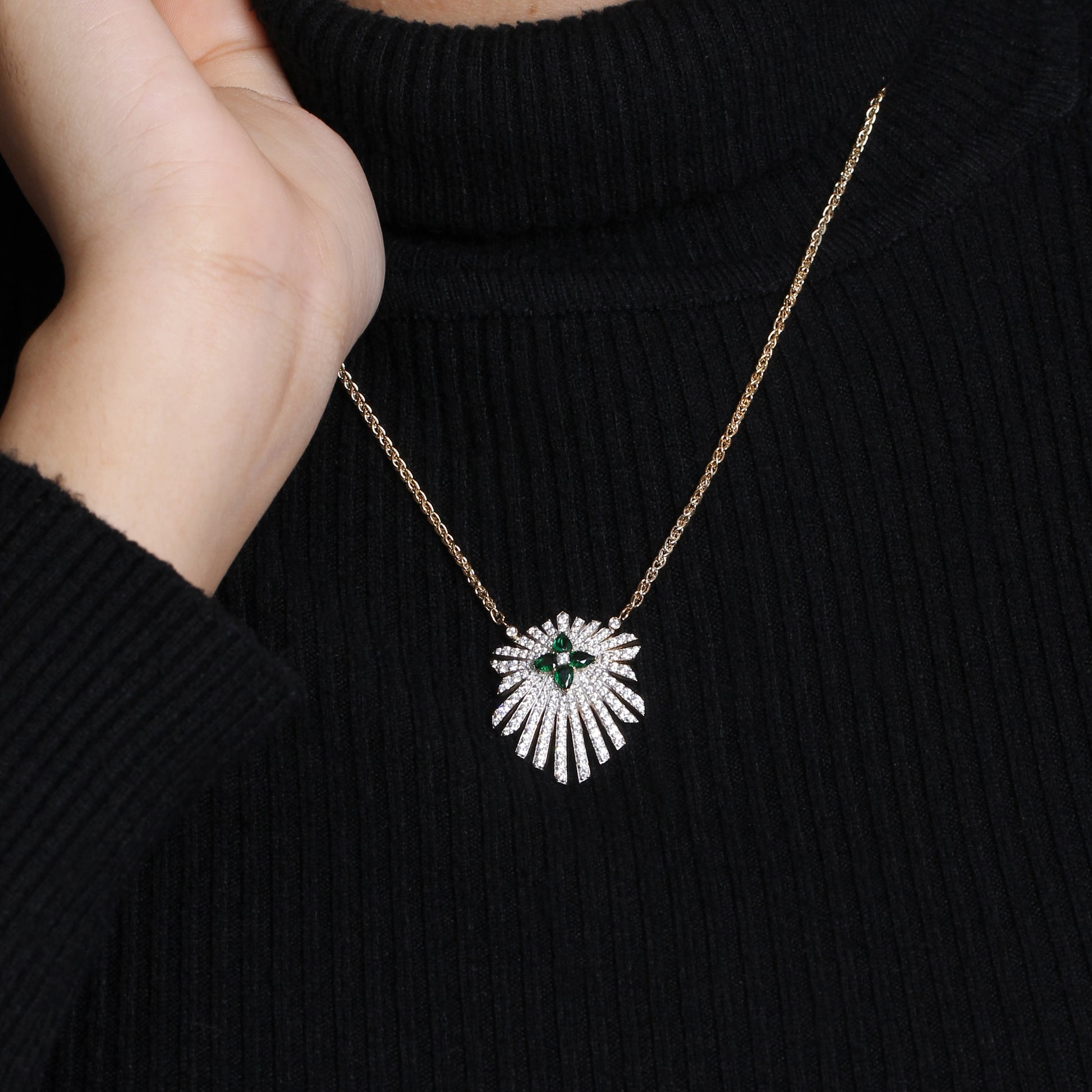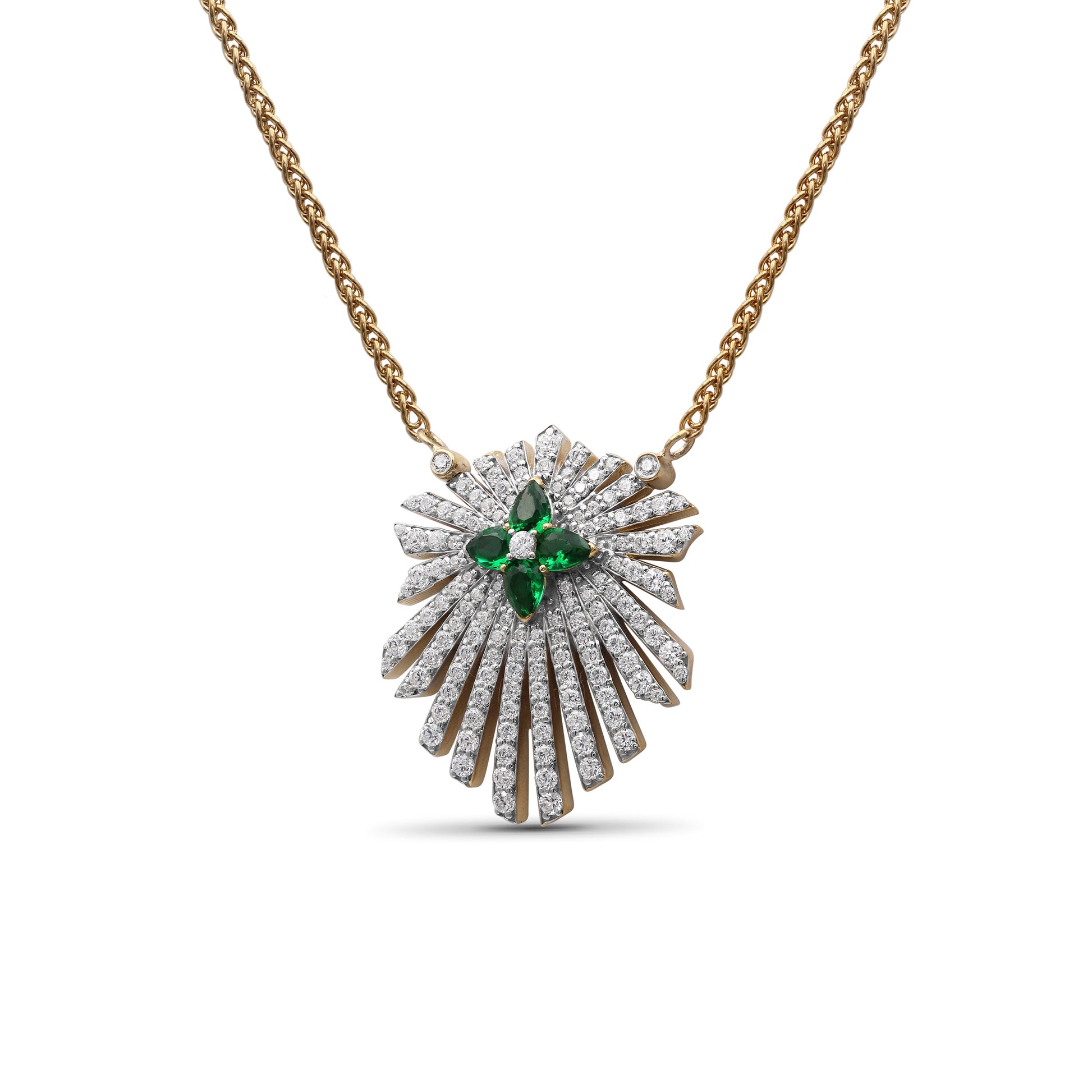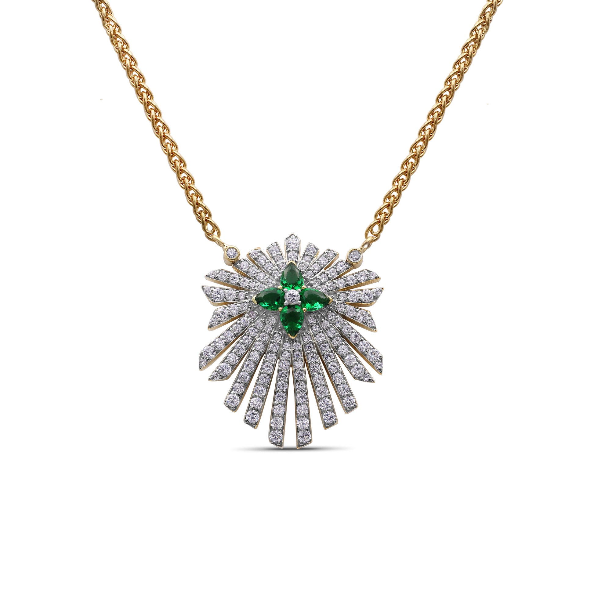 Sunray Emerald 0.55ct and Diamond 1.35ct Pendant in 18K Gold