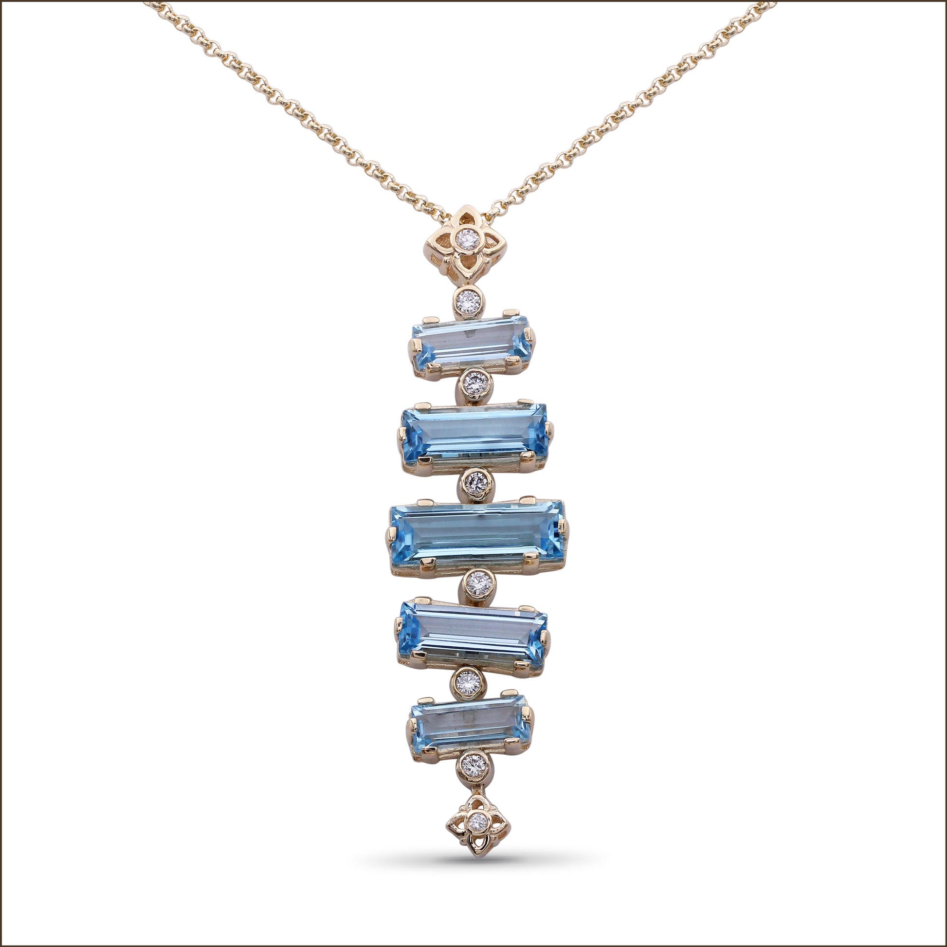 Echoing the tranquil tones of sky and sea, Aurora is light incarnate, reimagined. This pendant from the Aurora Collection is handcrafted in 18K Gold, featuring Swiss blue topaz, baguette cut, geometric elegance, 18K gold, modern design. A true collector’s piece that transforms gemstone storytelling into wearable art.