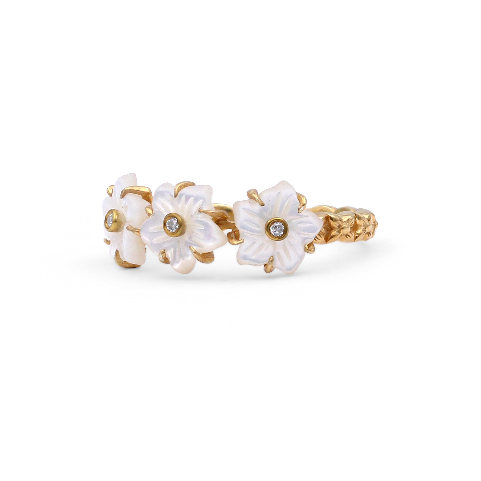 Colorbloom 8mm White Mother of Pearl Flower and White Diamond Ring in 18K Gold