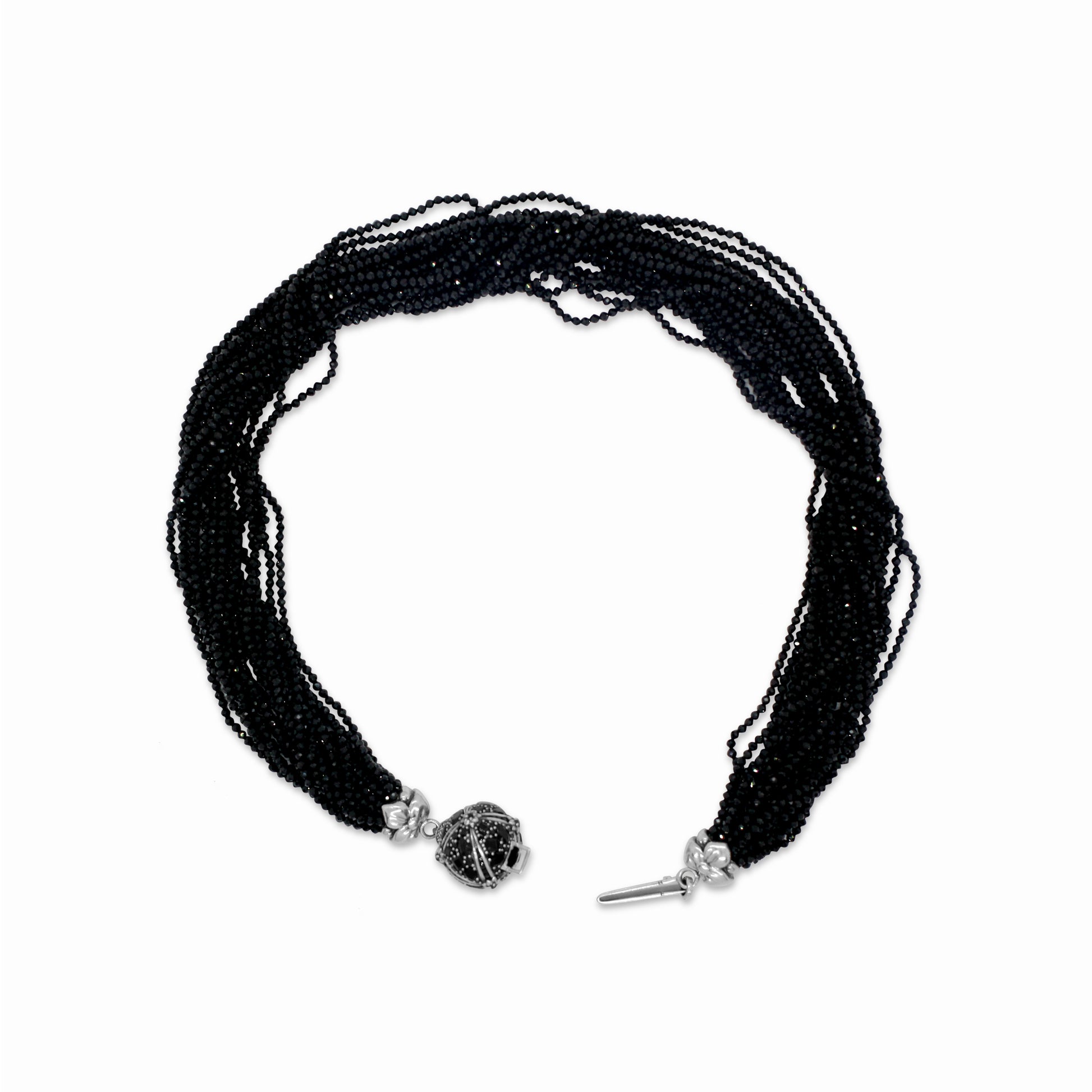 Garden of Stephen Black Spinel Multi-Strand Necklace in Sterling Silver with Black Spinel Pave Sunray Ball Clasp
