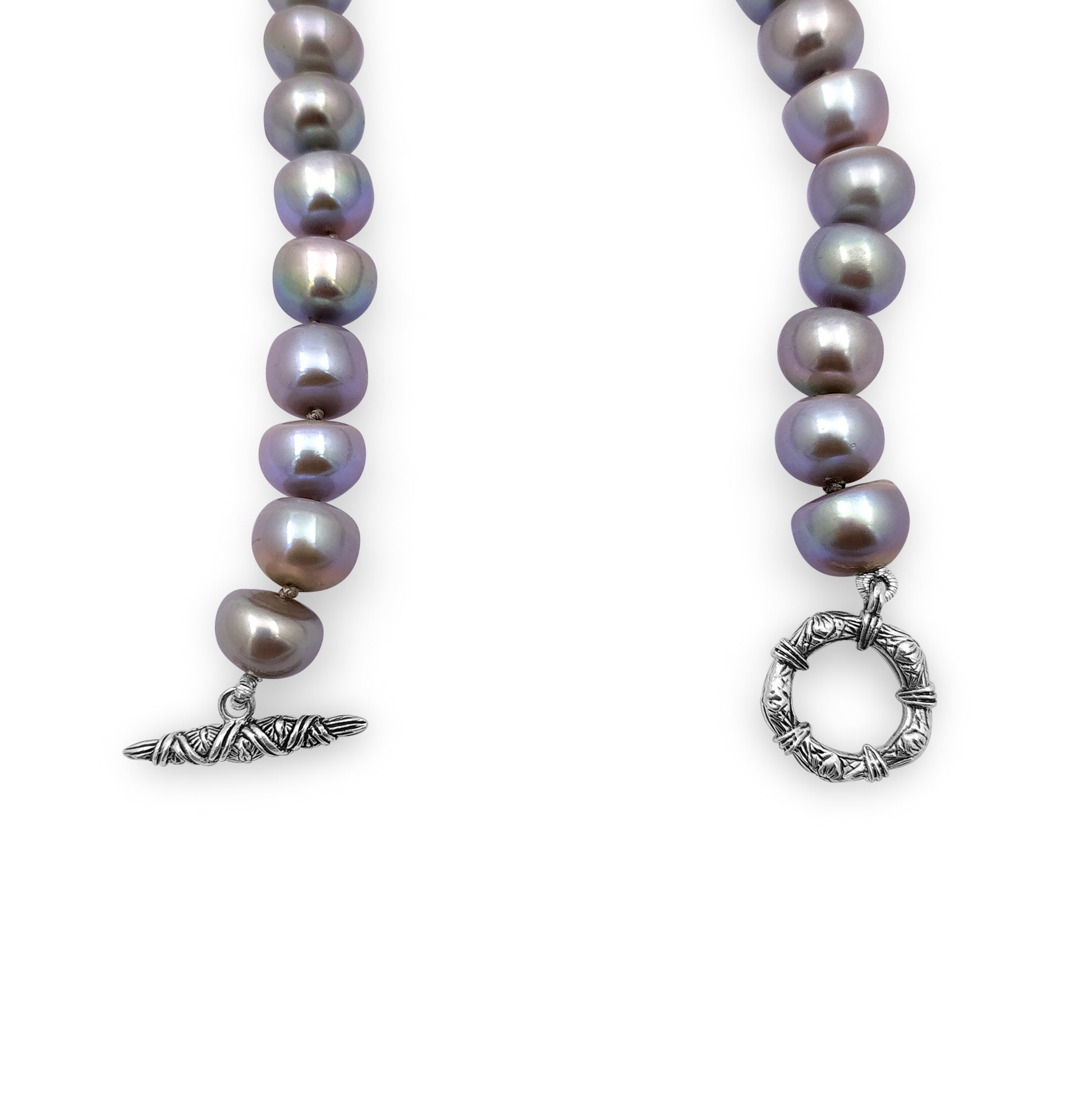 Silver Pearl and Engraved Sterling Silver Necklace