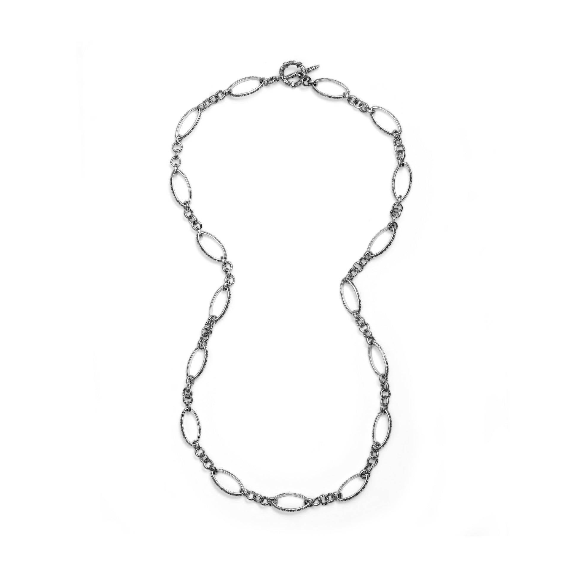 Orogento Hand Manipulated Signature Detailed Sterling Silver Chain Link Necklace