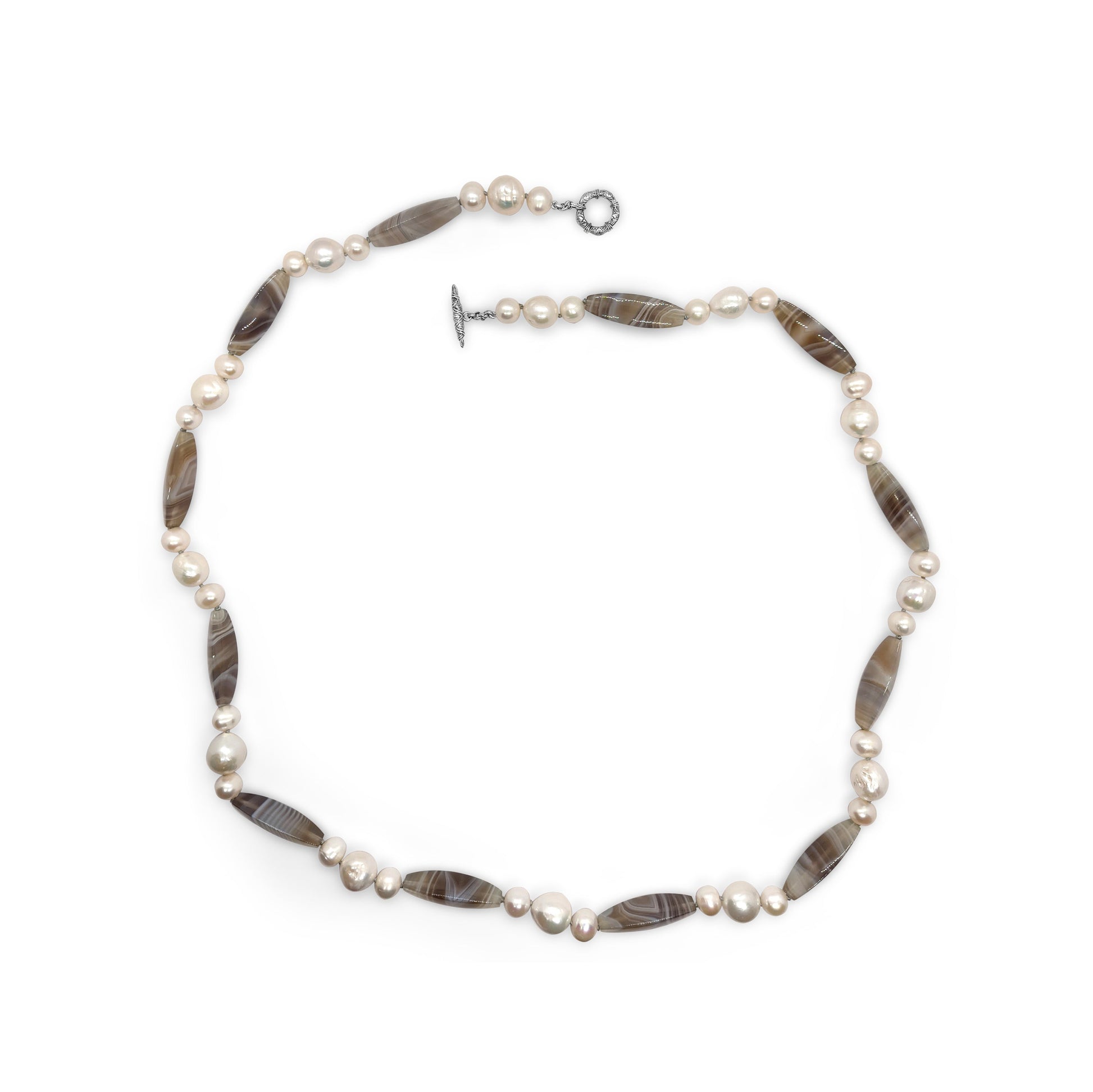 Terraquatic Natural Shaded Agate and Natural Pearl Necklace in Sterling Silver