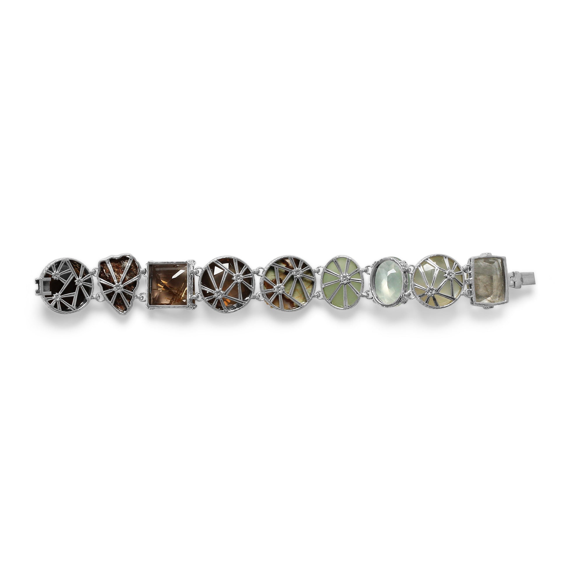 Facet Gold Hair Rutilated Green Moonstone Facet Brown Milky Quartz Facet Green MoonstoneFacet top Jade Facet Green Hair Rutilated Quartz Cooper Schist and Diamond 0.08ct Bracelet in Sterling Silver with 18K Gold Diamond Pave Adam