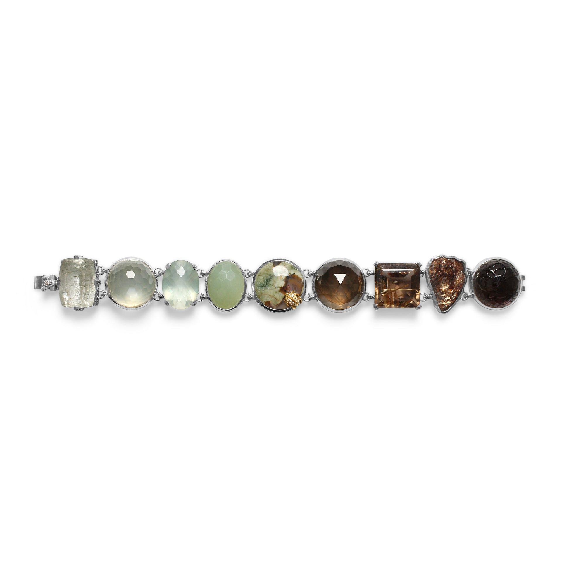 One of a Kind Facet Gold Hair Rutilated Green Moonstone Facet Brown Milky Quartz Facet Green MoonstoneFacet top Jade Facet Green Hair Rutilated Quartz Cooper Schist and Diamond 0.08ct Bracelet in Sterling Silver with 18K Gold Diamond Pave Adam