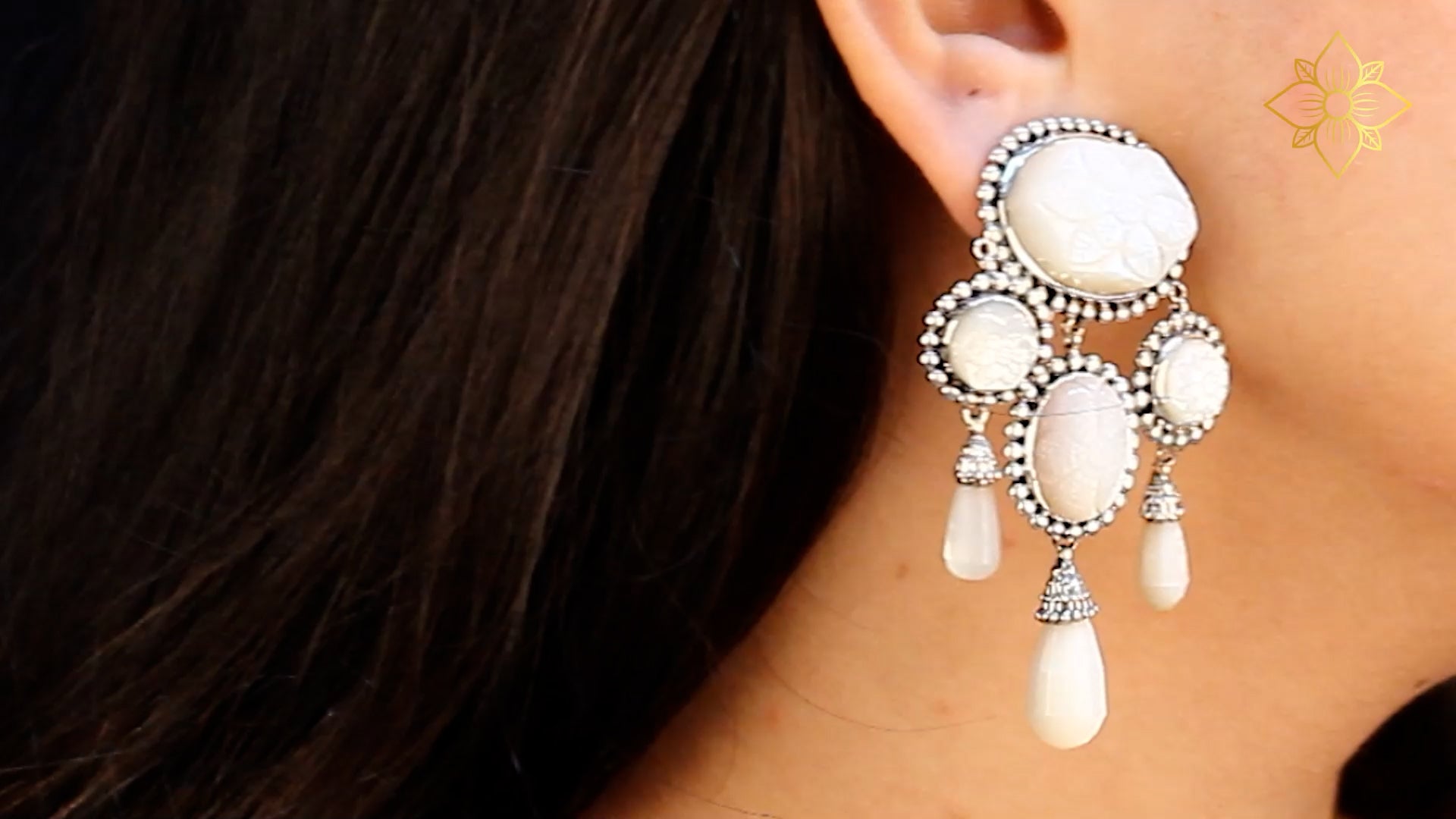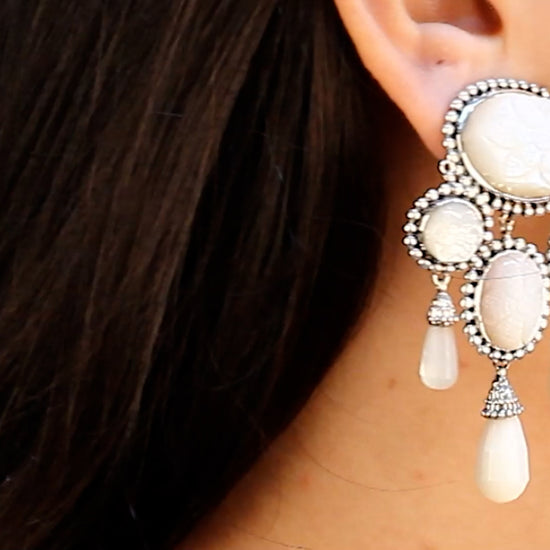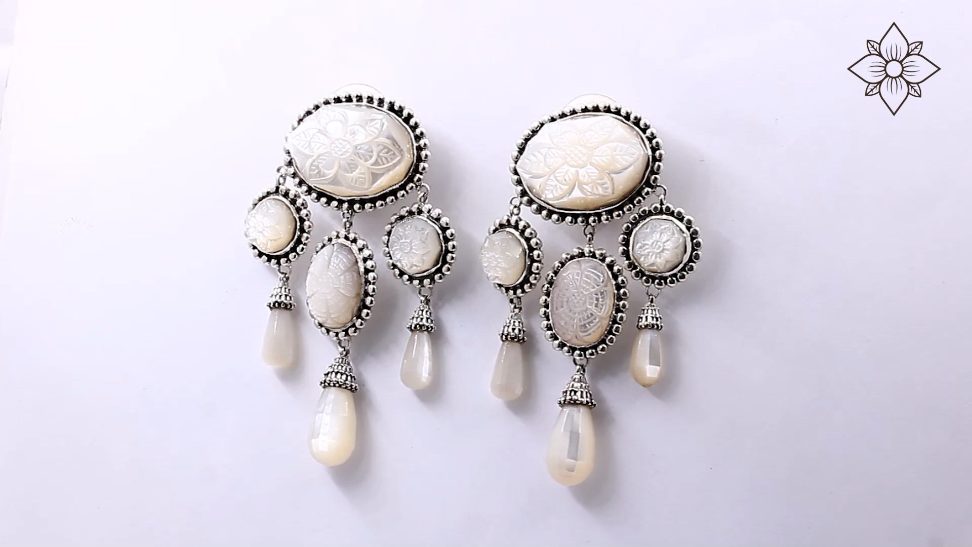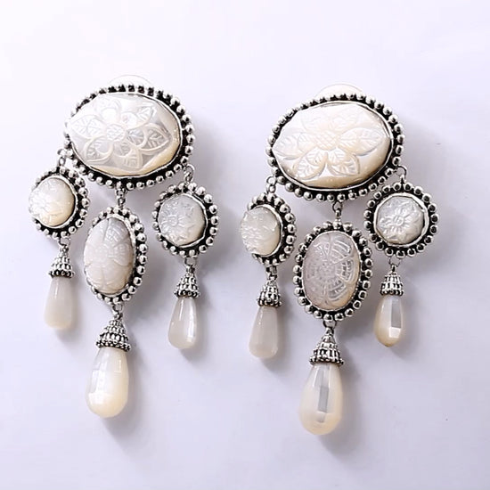One of a Kind Hand Carved Mother of Pearl Earrings in Sterling Silver