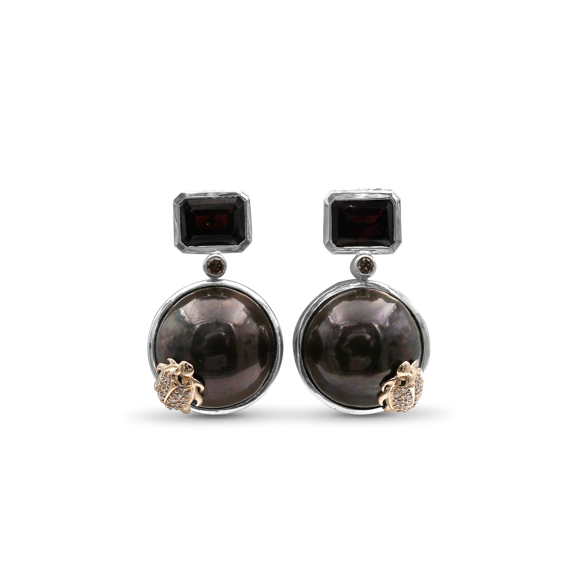 One of a Kind Garnet Brown Mabe Pearl and Diamond 0.20ct Earring in Sterling Silver with 18K Gold Diamond Pave Adam