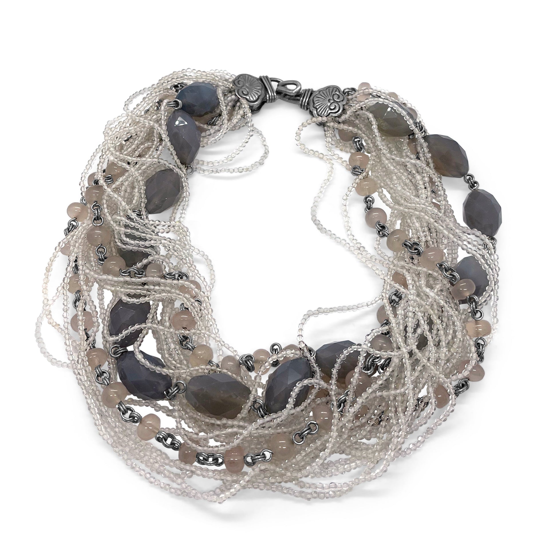 One of a Kind Faceted Agate, Rose Quartz and Natural Quartz Multi and Linked Strand Necklace in Sterling Silver