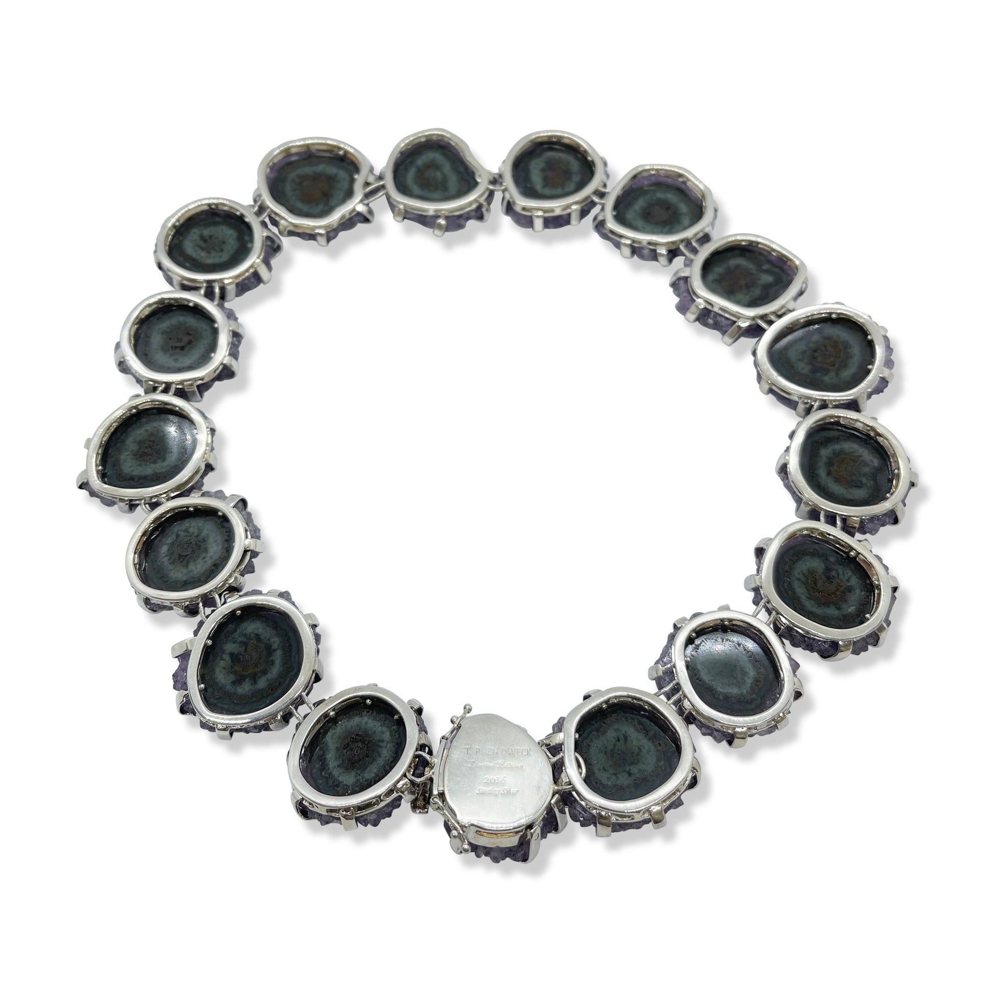 One of a Kind Criss Cross Petrified Wood Necklace in Sterling Silver