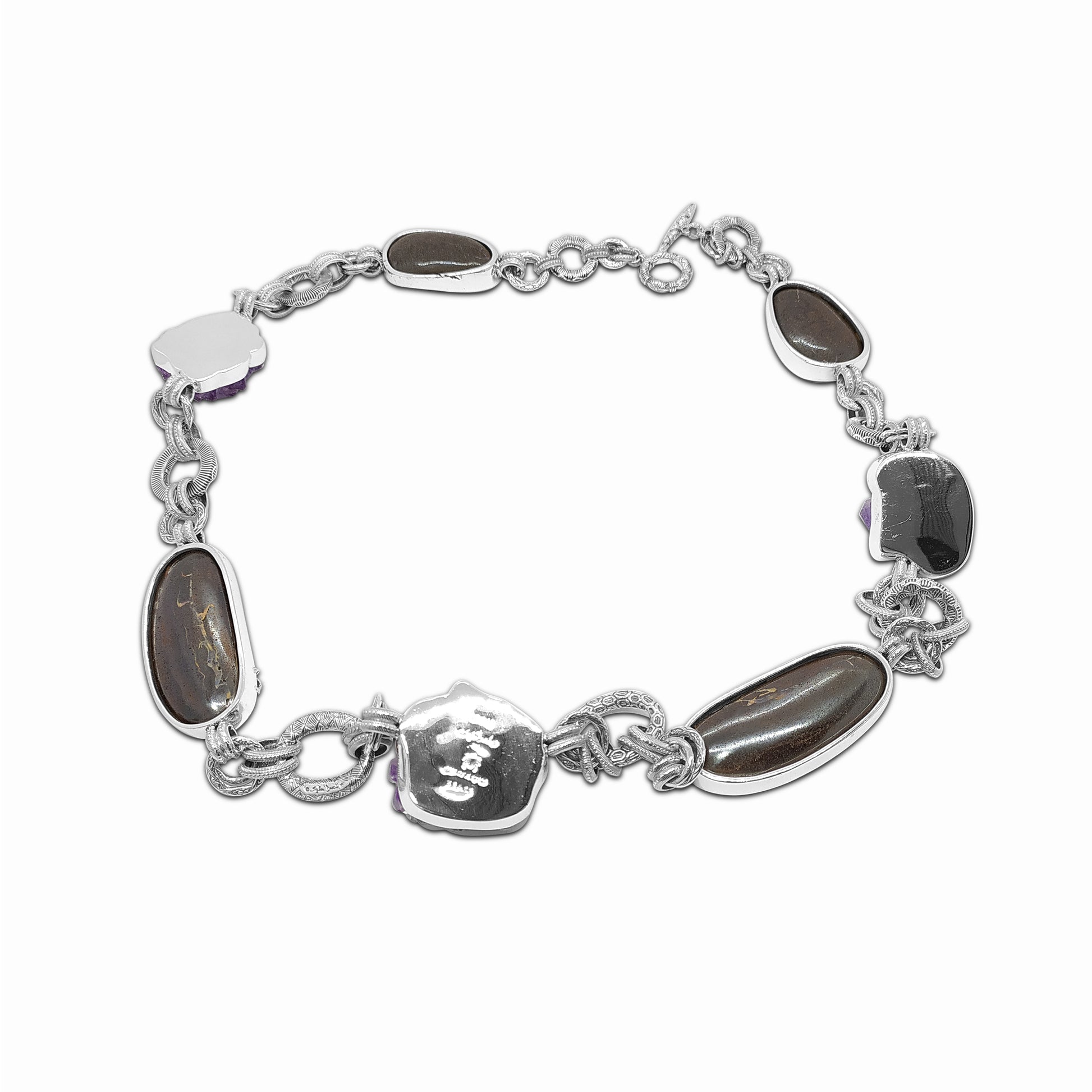 One of a Kind Boulder Opal Amethyst Druzy Necklace in Sterling Silver with 18K Gold Adam