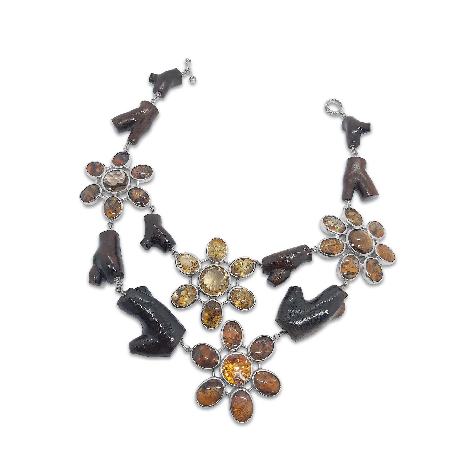Dendritic Quartz Cognac Quartz Citrine with Branch Wood Necklace in Sterling Silver with 18K Gold Adam