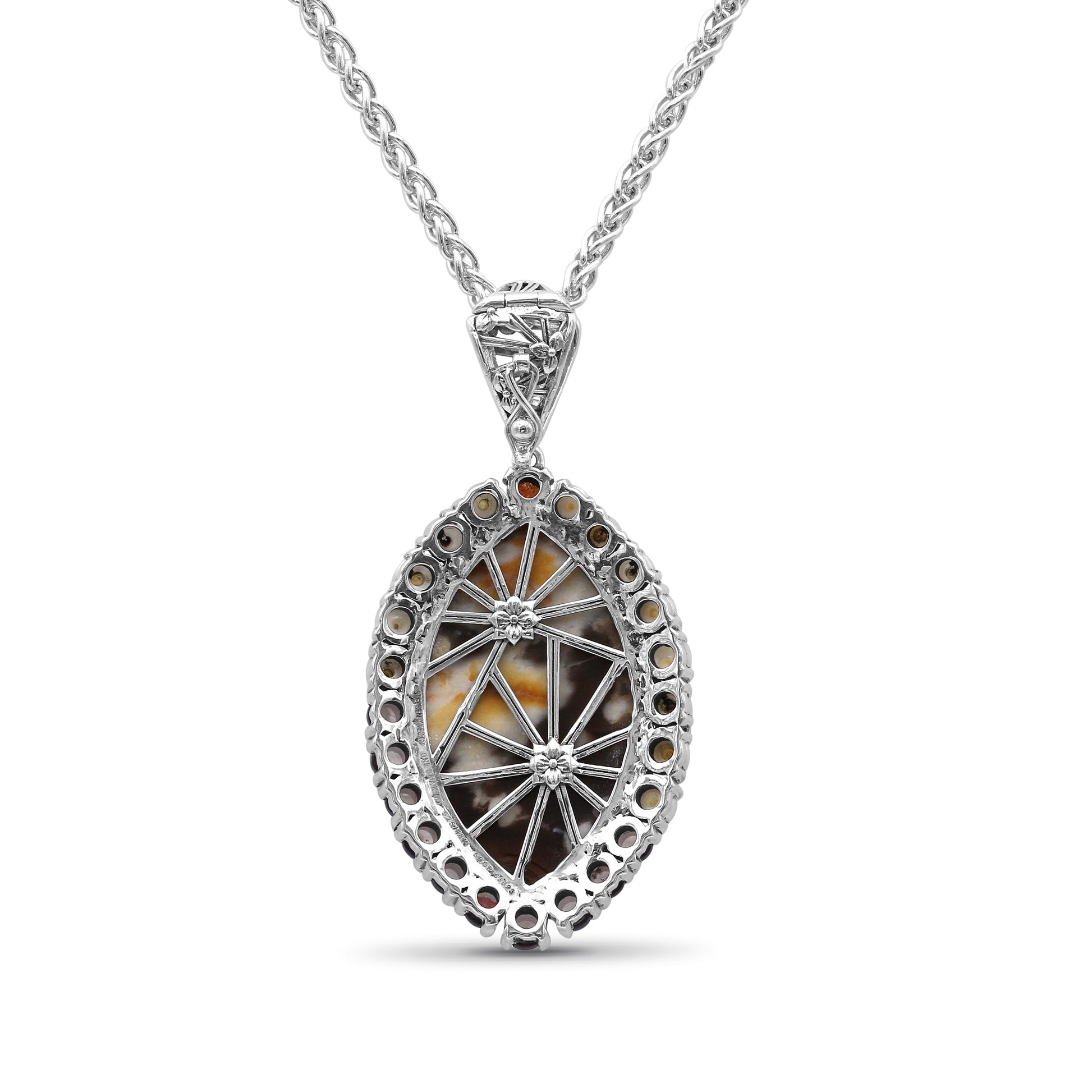 One of a Kind Smooth Peanut Wood Orange Sunstone Smooth Smoky Quartz White Pearl and Diamond 0.11ct Pendant in Sterling Silver with 18K Gold Diamond Pave Adam