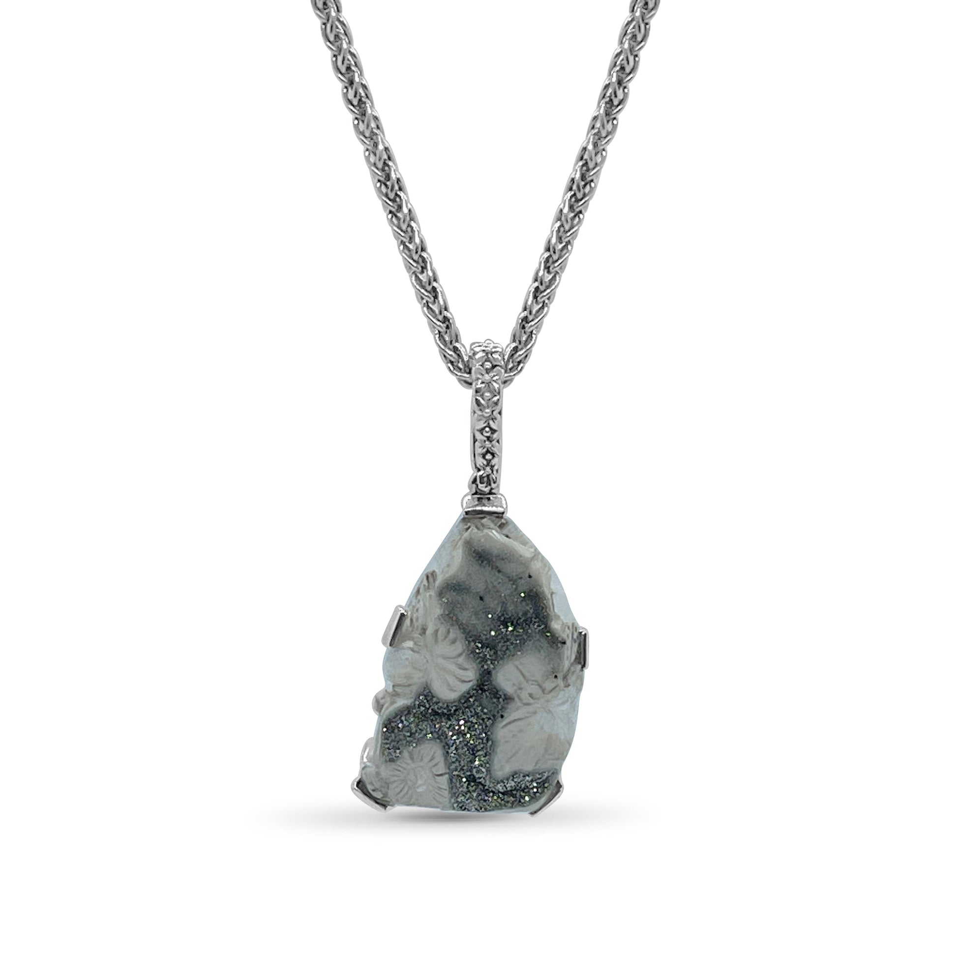 Garden of Stephen Platinum Valley Druzy Agate Pendant and Sterling Silver Chain