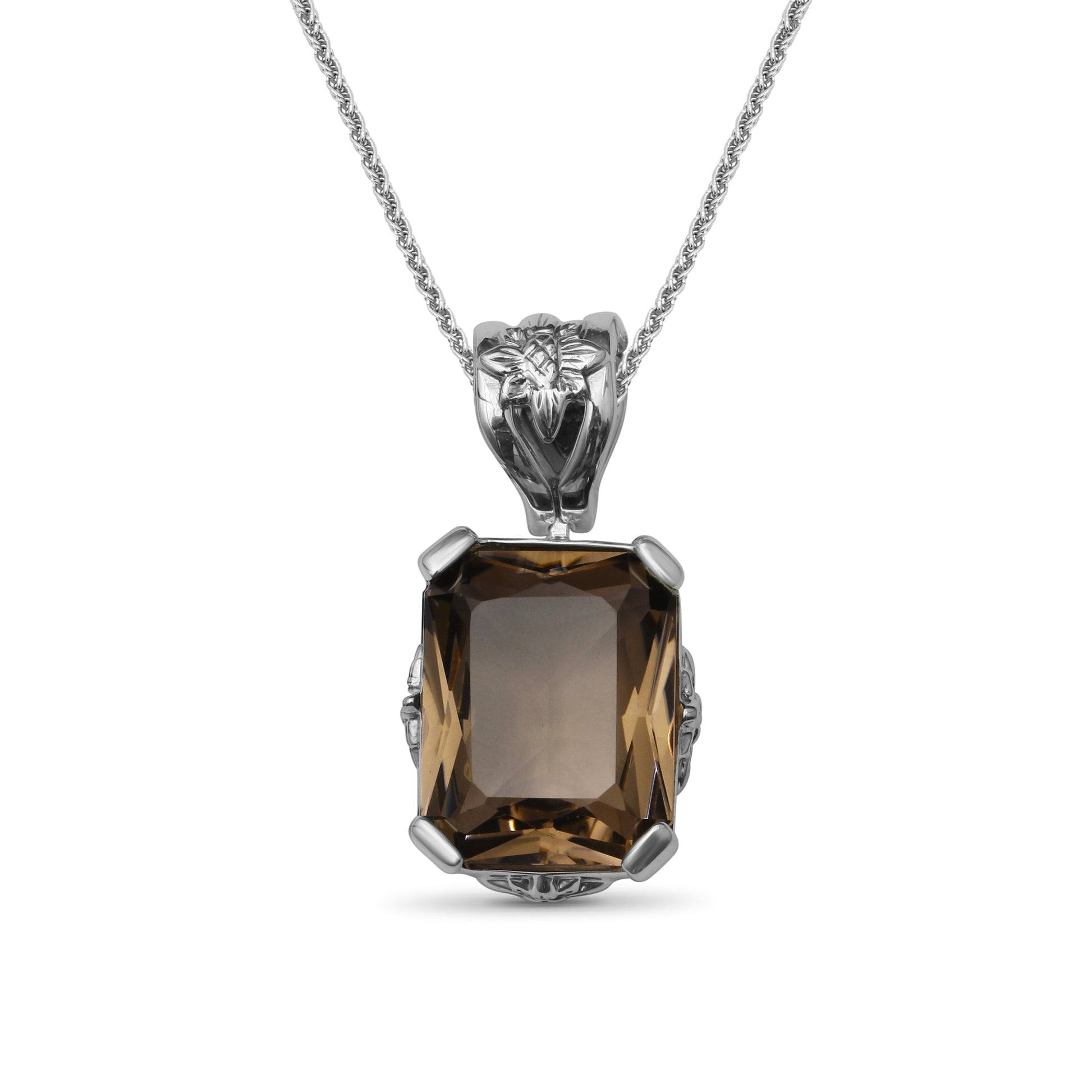 Garden of Stephen 40.80ct Faceted Smoky Quartz Pendant in Sterling Silver