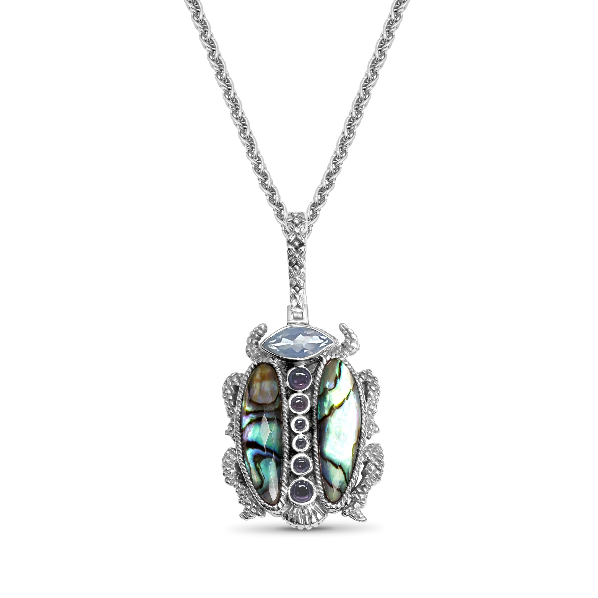 Garden of Stephen Lavender Moon Quartz Rhodolite Garnet Natural Quartz and Abalone Scarab Pendant in Sterling Silver