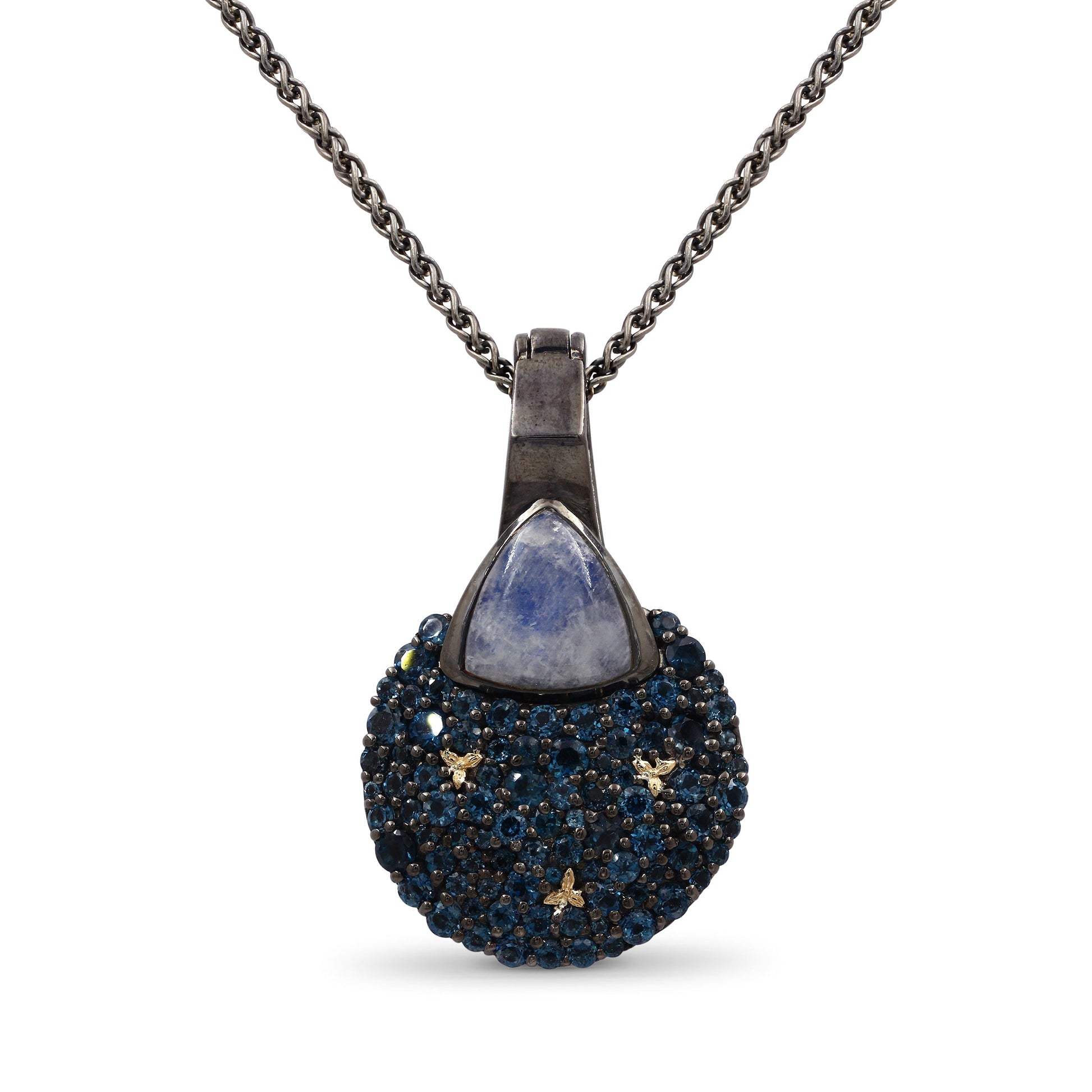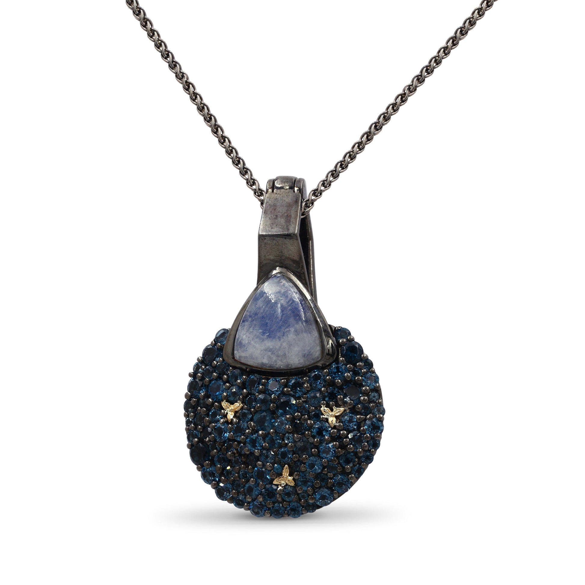 Garden of Stephen Rainbow Moonstone and London Blue Topaz Pendant in Sterling Silver with 18K Gold Flowers