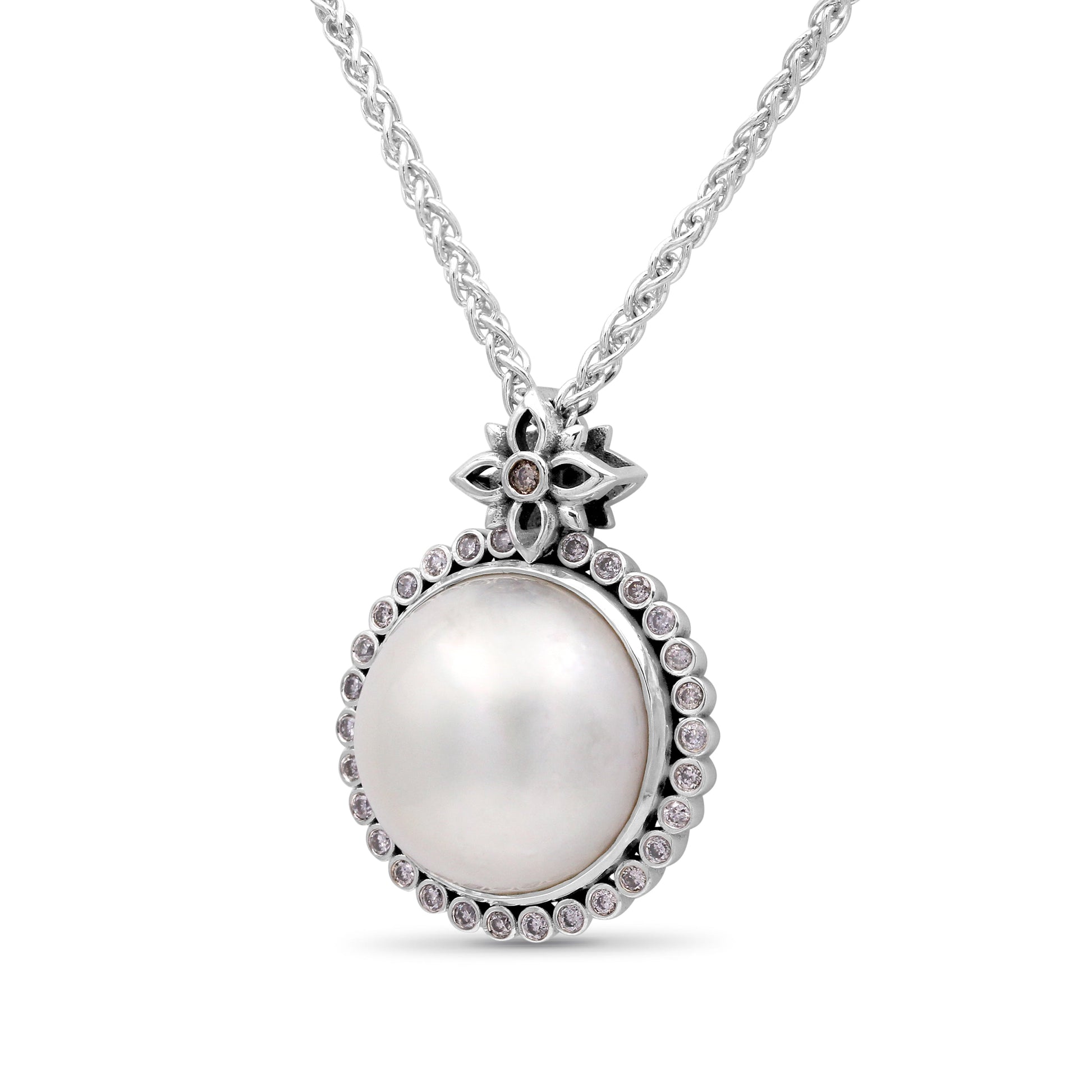 Pearlicious 15.00MM White Pearl Pendant in Sterling Silver with 18K Gold