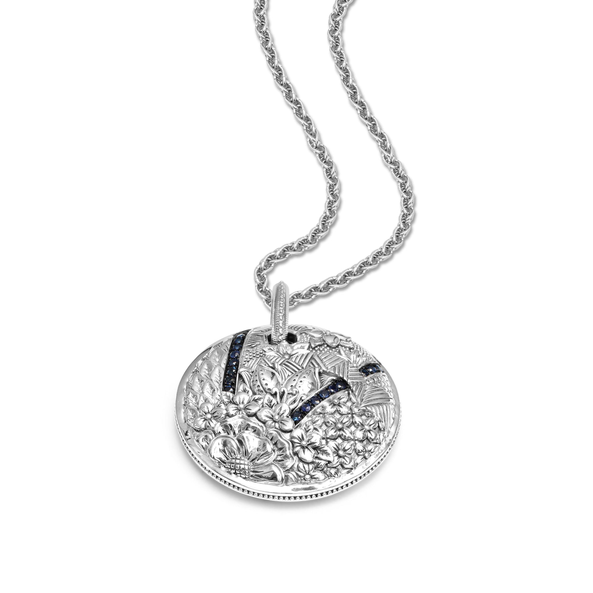 Kyoto Blue Sapphire 0.75ct Pendant Large in Sterling Silver