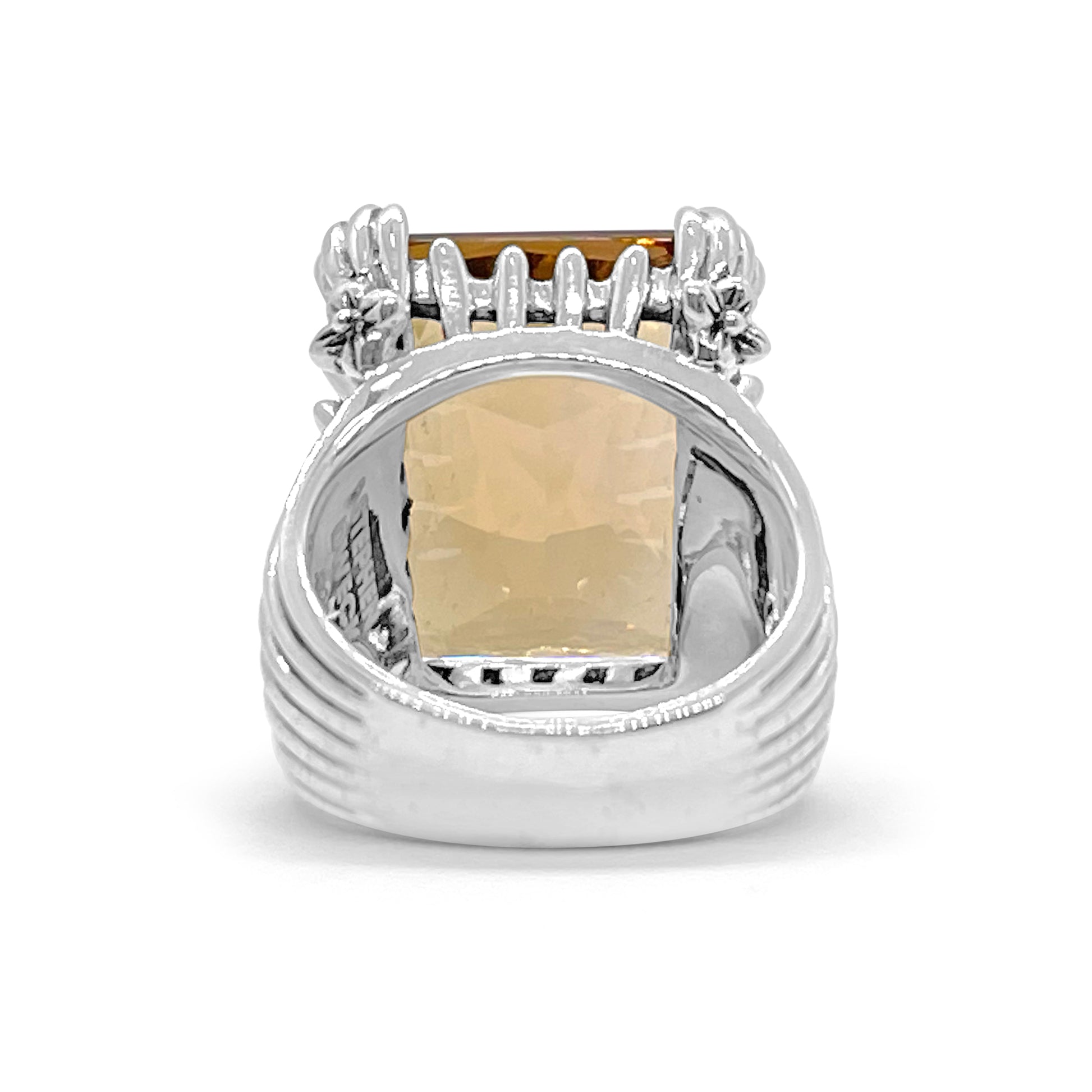 Garden of Stephen Faceted Emerald Cut Champagne Quartz Ring in Sterling Silver