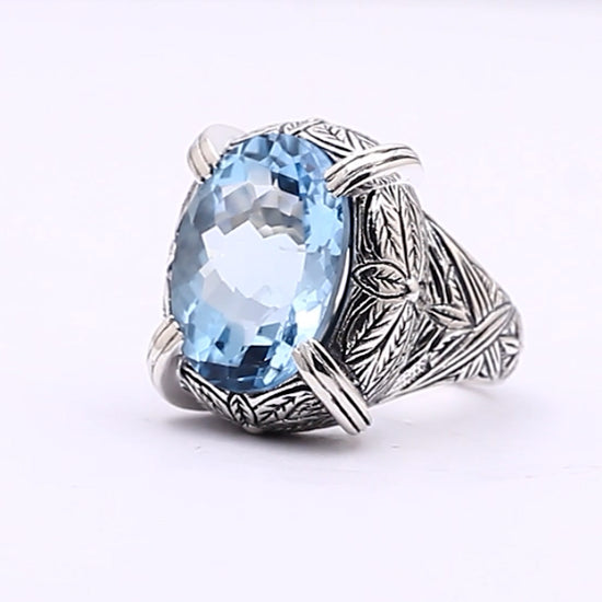 Garden of Stephen Faceted Blue Topaz Ring in Engraved Sterling Silver