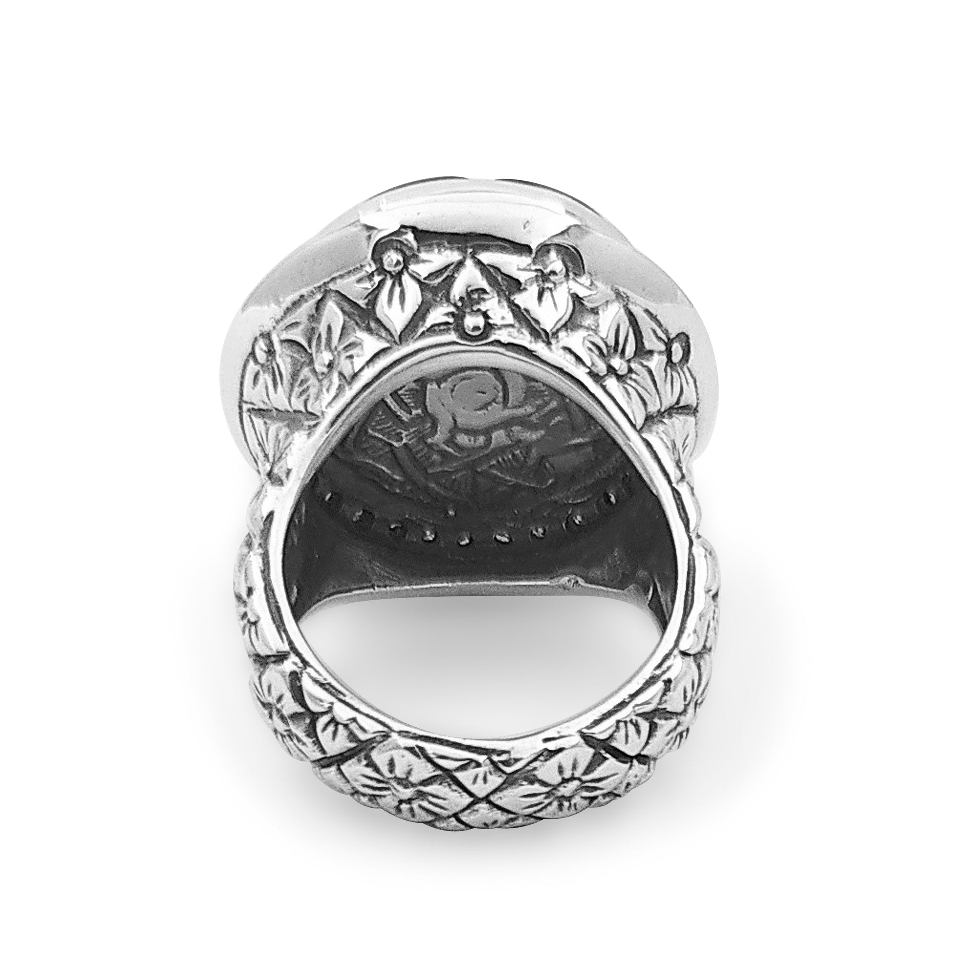 Legacy Hand Carved Tahitian Mother of Pearl Cameo Ring with 0.30ct Champagne Diamonds in Sterling Silver