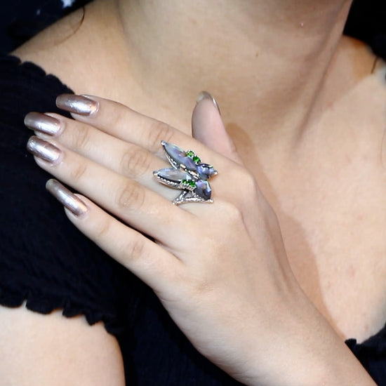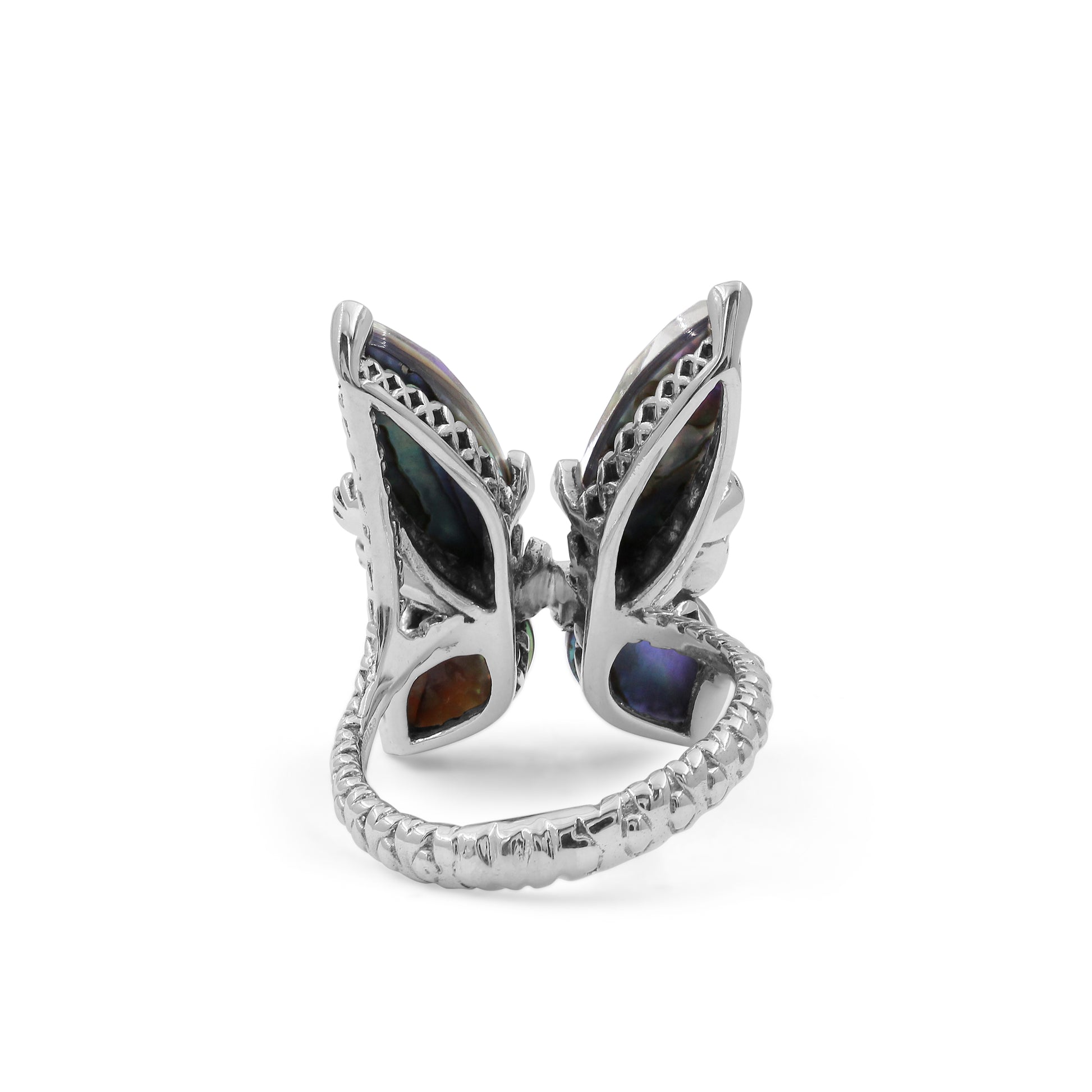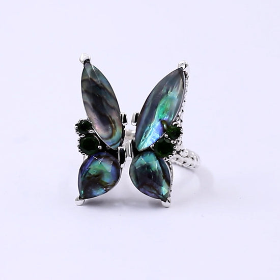 Garden of Stephen Faceted Natural Quartz Abalone and Peridot Butterfly Ring in Sterling Silver