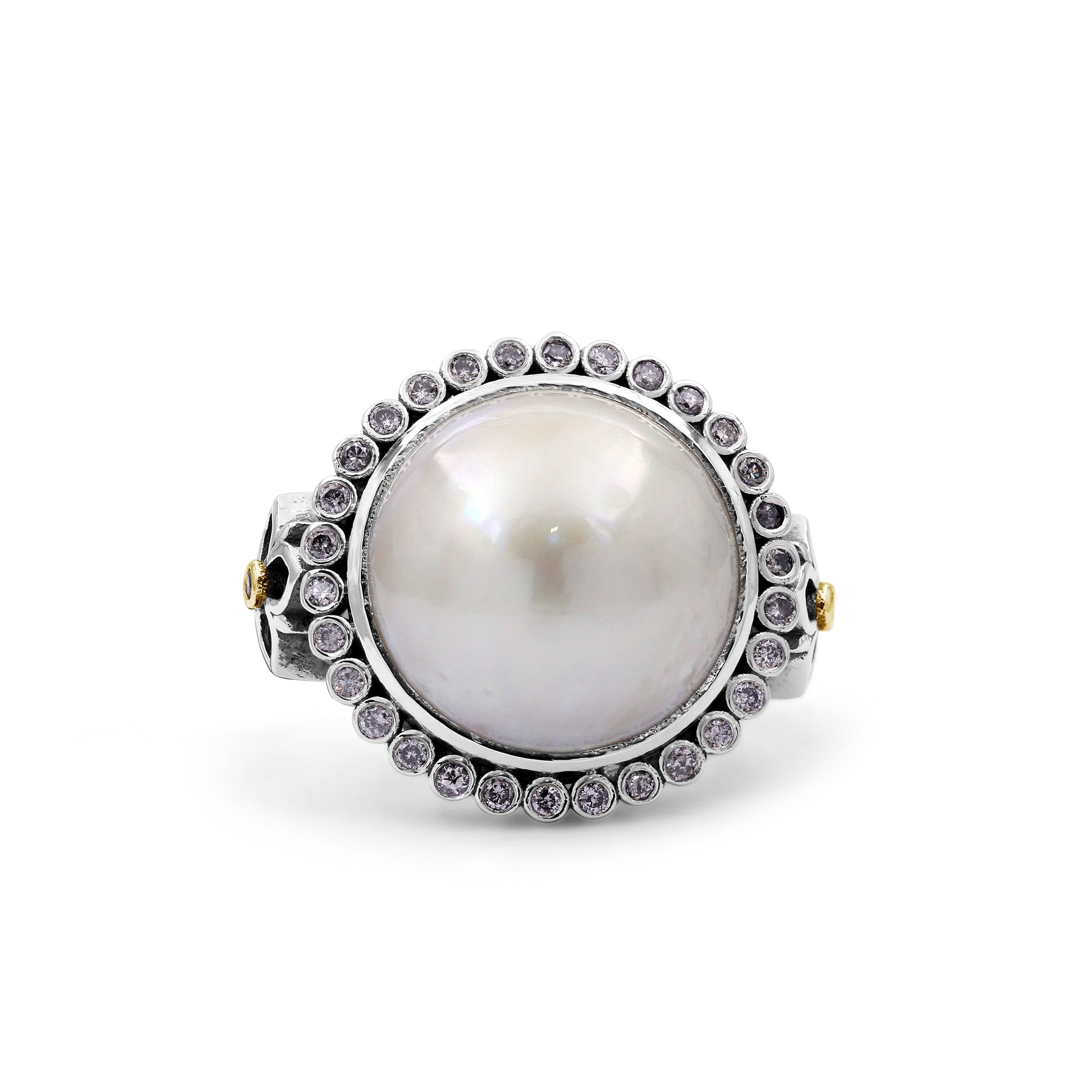 Pearlicious 15.00MM White Pearl Ring in Sterling Silver with 18K Gold