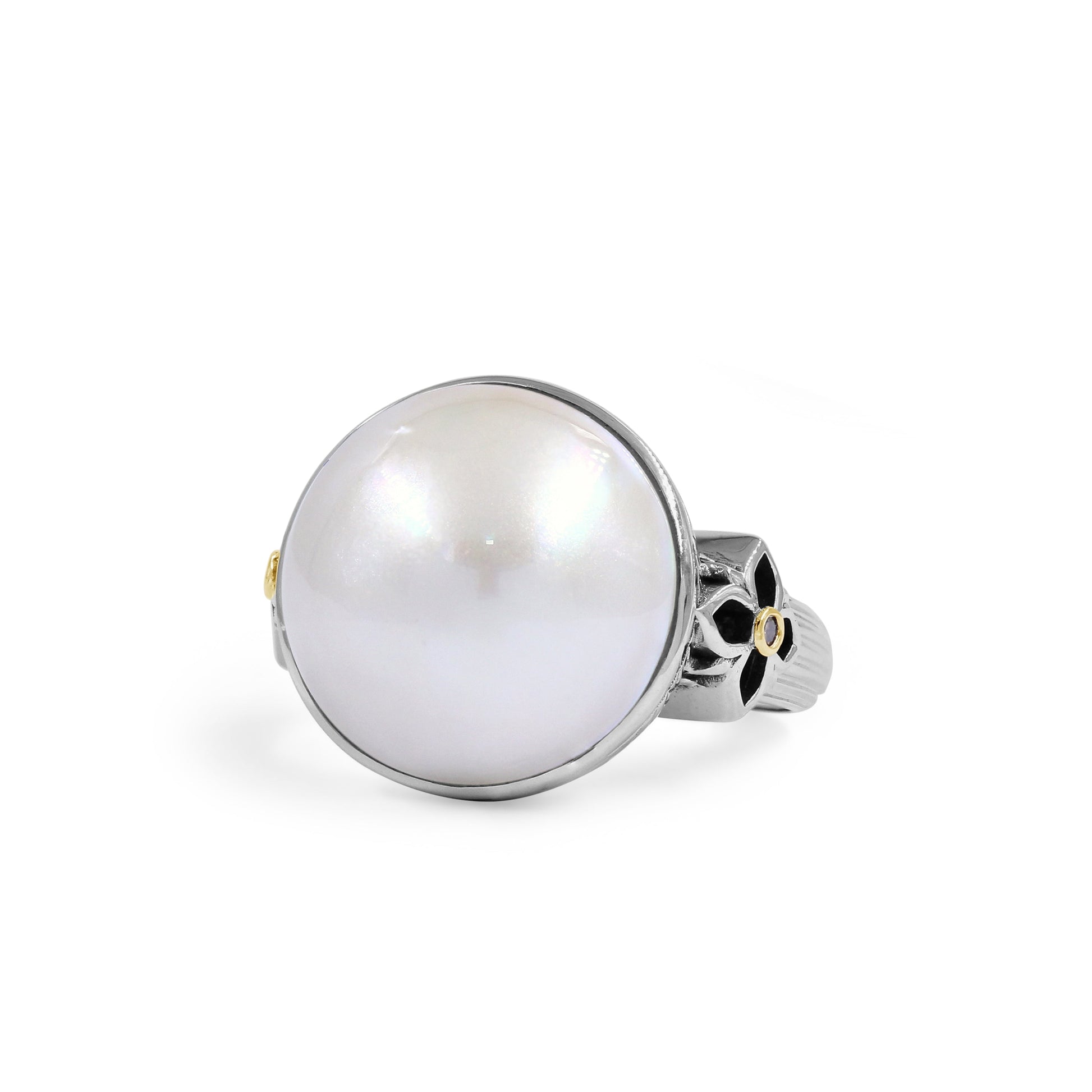Pearlicious 14.00MM White Mabe Ring in Sterling Silver with 18K Gold