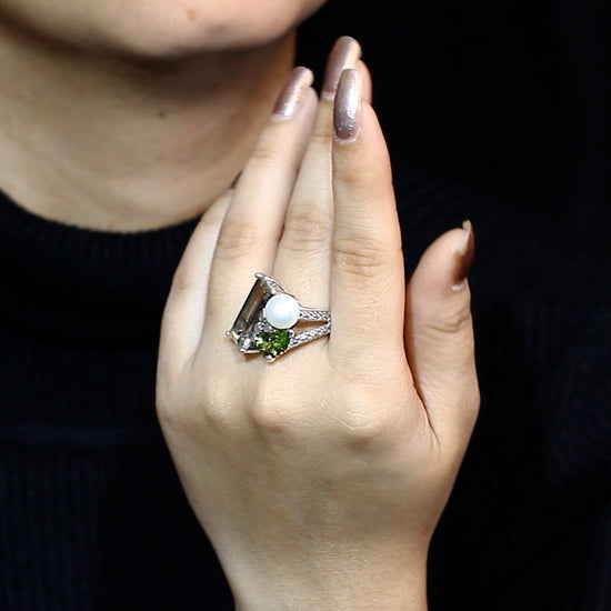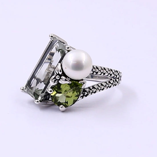 Rockrageous Green Amethyst Peridot and Pearl Ring in Sterling Silver