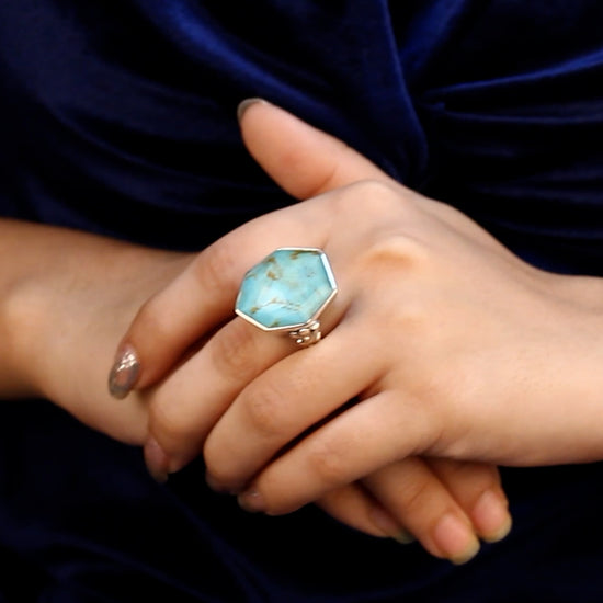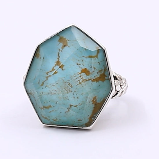 Galactical Faceted Natural Quartz and Turquoise Ring in Sterling Silver